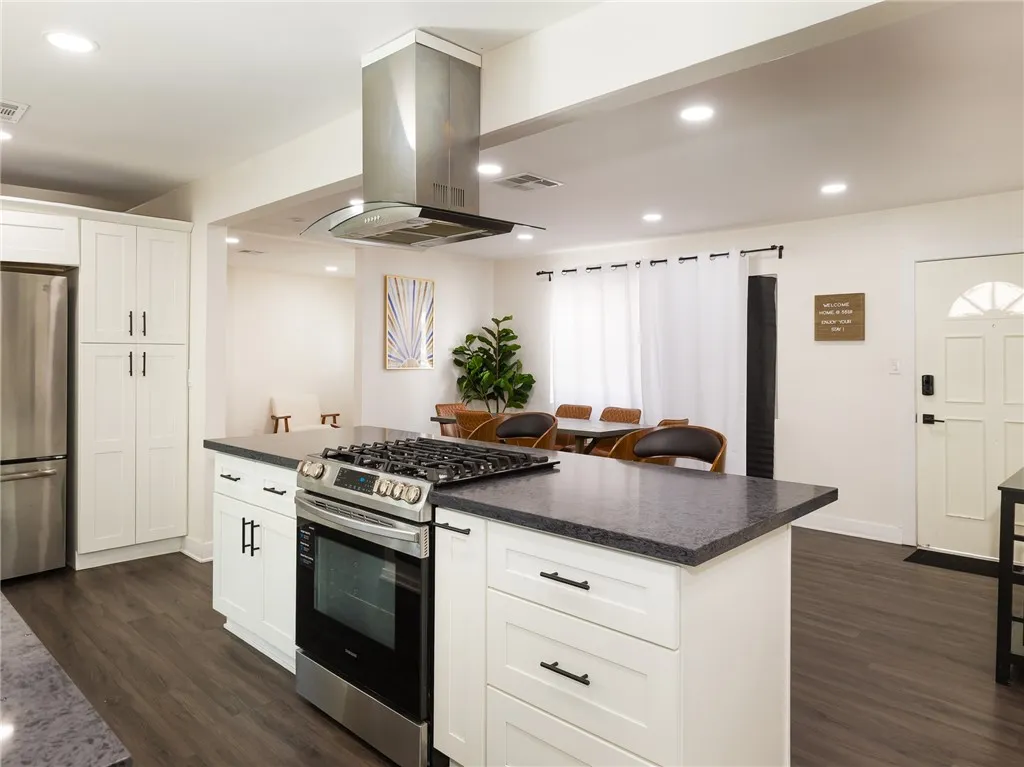 Welcome to 5518 W 117th St, Hawthorne, a beautifully updated 4 bed, 2 bath home sitting on an incredible 10,000+ sqft lot with modern amenities, including AC, heat, and solar panels for energy efficiency. As you enter, you’re greeted by a sleek kitchen featuring a spacious island and a charming dining area. To the left, you’ll find two cozy bedrooms, one with sliding doors leading to the backyard, as well as a full bathroom. On the right, there’s a comfortable seating area, another full bathroom, and a third bedroom. Conveniently, the laundry room is also nearby. Through the kitchen, the open-concept living room offers abundant natural light with large windows and a slider that leads to the expansive backyard, perfect for entertaining. Situated on a massive lot, the property also includes a two-car detached garage and recessed lighting throughout, making this home both stylish and functional.