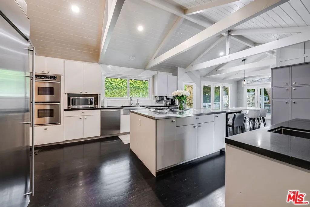 Perched on a private knoll in the heart of coveted Holmby Hills, this extraordinary estate represents the pinnacle of refined living. Masterfully reimagined and completely rebuilt with the utmost attention to quality, craftsmanship, and architectural detail, this approx. 7,025 sq.ft. Traditional estate is a harmonious blend of timeless charm and modern elegance. Beyond dual gates and a circular driveway, a gracious motor court welcomes guests into a world of serenity and sophistication. Enveloped in lush, mature landscaping, the property offers total seclusion on over 31,000 sq.ft. of meticulously manicured grounds. A grand formal foyer sets the tone, opening to light-filled living spaces adorned with gleaming hardwood floors, intricate custom millwork, and expansive wall space ideally suited for fine art. The formal living room, anchored by a stately fireplace, exudes quiet elegance, while the expansive family room opens to a chef’s kitchen of exceptional scale, complete with professional-grade appliances, a large center island, breakfast bar, and sunlit breakfast room. The luxurious primary suite is a sanctuary unto itself, featuring soaring ceilings, a tranquil sitting area, and serene garden views. Additional amenities include a grand-scale formal dining room with a walk-in wine room, a large state-of-the-art theater, an office, and a lower level fully equipped gym and game room, designed for sophisticated leisure. Outdoors, the estate reveals its true grandeur. The expansive, flat backyard is an entertainer’s dream, offering a harmonious blend of green lawn and curated hardscape, a 45-foot pool with spa, and ample space to host gatherings of any scale in total privacy. With a 3-car attached garage, generous motor court, and an incomparable setting in one of Los Angeles’ most prestigious enclaves, this residence stands as a rare offering, where architectural distinction meets elevated living.