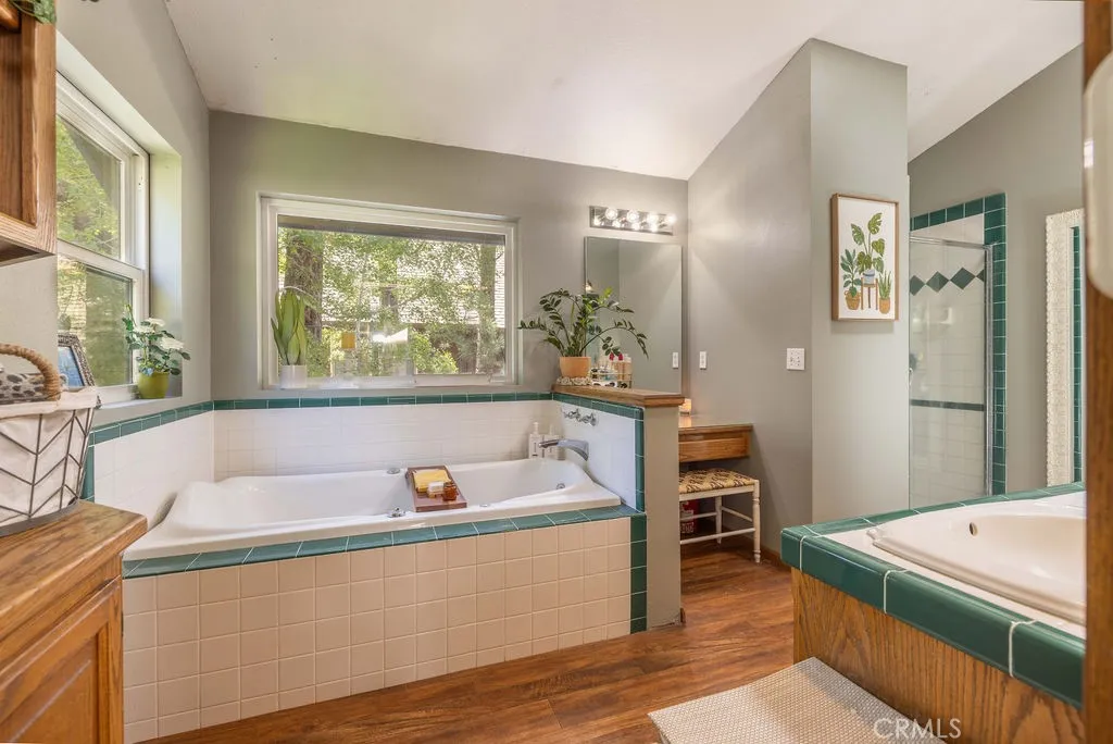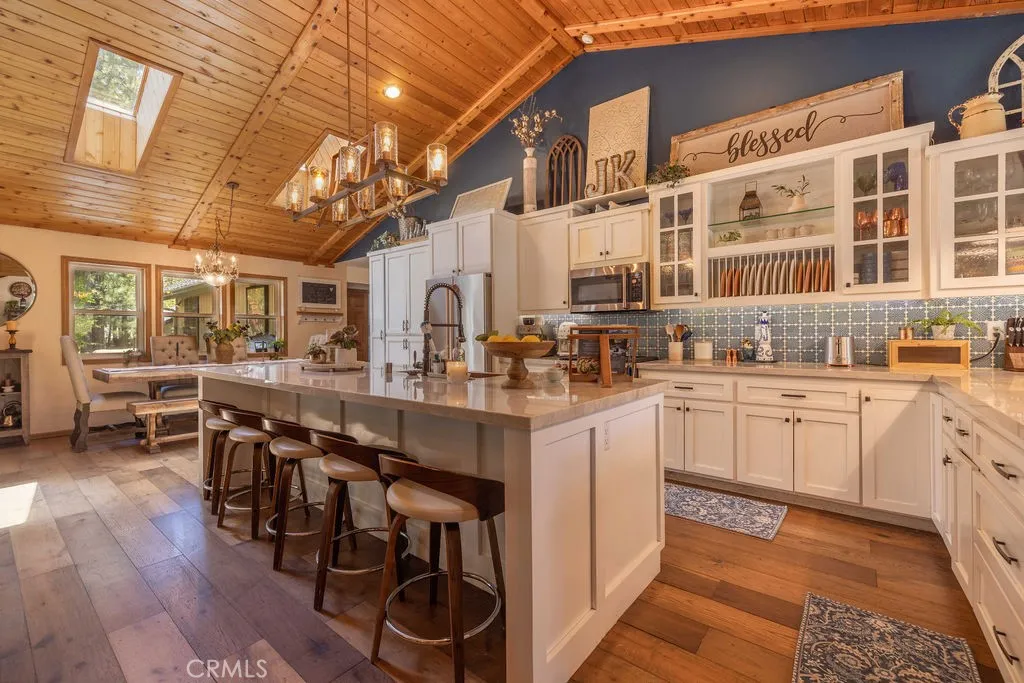 Discover your perfect mountain retreat with this custom-designed home nestled on a secluded private road, just minutes from ski slopes and the lake. The spacious main residence features an open-concept kitchen with vaulted ceilings, hardwood floors throughout, and a cozy wood-burning fireplace surrounded by built-in cabinets. Thoughtfully laid out mostly on one level, the home offers three bedrooms and two bathrooms on one side, with a serene master suite on the opposite side, plus a game room upstairs for added entertainment. Just a short stroll away, a charming 1-bedroom, 1-bath guest house awaits, complete with a kitchenette and its own private patio—ideal for visitors or as a peaceful retreat. The fully fenced, beautifully landscaped grounds evoke a forest-like ambiance, enhanced by a selection of fruit trees and raspberry bushes. Recent upgrades include a new 50-year roof, Anderson windows, tankless water heater, and a newer HVAC system, providing comfort and peace of mind in this tranquil mountain haven.