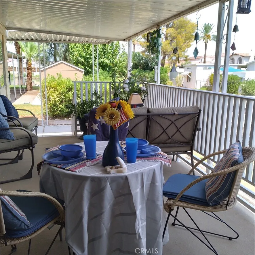 Shaded carport for 2 vehicles, plus separate extra-height carport for boat parking. Covered deck overlooks park water feature with sunrise views toward the mountains in Arizona. Adjacent to the spacious deck, sliders lead to the ample and inviting sunroom where walls of windows let in the beautiful light and views regardless of wind or weather. The 9.5’x15′ sunroom has its own window A/C unit and electric fireplace for comfort year-round