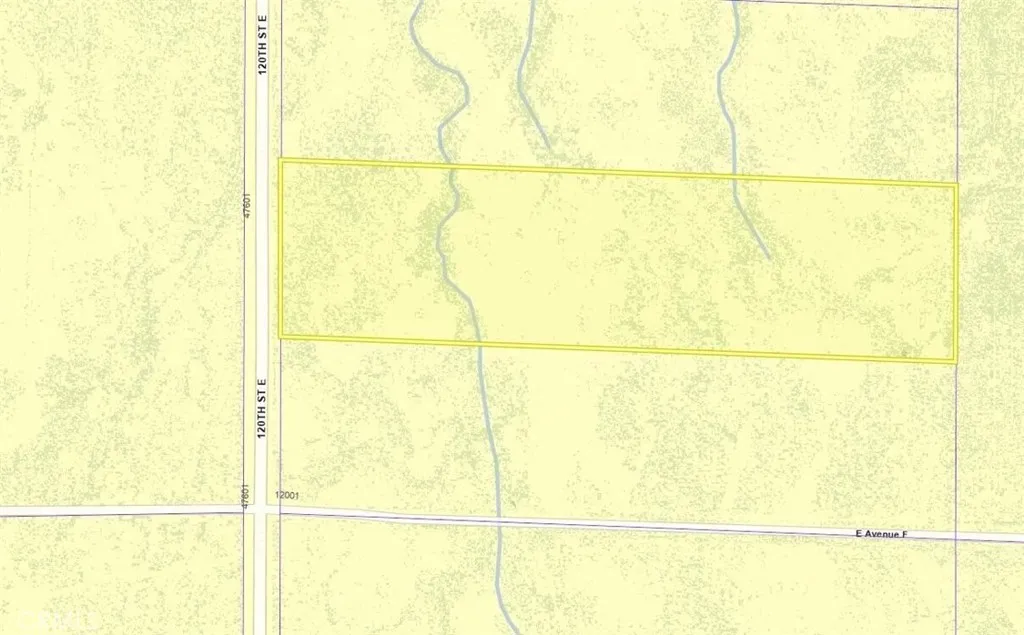 9.9 acre lot with 335 feet of paved frontage on 120th St E. Power is about 330 feet to the south at 120th and Ave F. There are a few ranch homes in the area. The zoning is A21 for agriculture, animals, and a home. APN 3310-012-010.