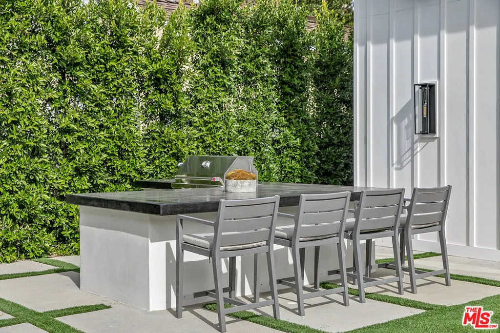 Experience the pinnacle of luxury living in this new construction modern farmhouse located in highly sought-after Westwood just off of renowned Sunset Boulevard. Entering through the grand pivot door you will find an open floor plan set on French oak wood floors boasting an expansive living room, fire sided family room, an executive office, wine cellar, a custom Italian kitchen claiming imported stone counter tops, Miele appliances and Graff water fixtures all beneath lofty 11-foot ceilings – nothing but quality craftsmanship and timeless design throughout. The chandelier illuminated staircase leads to the primary suite possessing custom vaulted ceilings, fireplace, a terrace overlooking the backyard, a walk-in closet and a deluxe opulent bathroom. Neighboring the primary suite lay 3 large en-suites and laundry room. Making your way outside through the sliding glass pocket doors introduces you to the resort-like backyard with a fire pit, outdoor kitchen, a Pebble Tec pool and spa and a guest house with a full bathroom – all surrounded by towering Ficus plants offering the upmost privacy. This smart home also features an advanced control4 home automation, multi-zone climate control, security systems and a 2-car direct access garage. Truly an exceptional property!