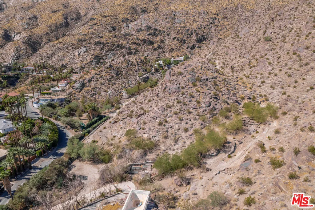 This is one of the last remaining vacant lots in The Mesa neighborhood. Comes with preliminary plans for a 5,400 square foot house plus a 760 square foot 3-car garage. This architectural house has been designed by the published firm Hundred Mile House / Duane Smith. House design also includes a massive 80 foot pool, outdoor kitchen, a luxurious primary suite with a morning kitchen and en-suite laundry. The first round of design review with the city has been completed and revisions have been made and are ready for review. Stunning modern design leveraging the landscape and topography of this very unique lot. Soils report is available. There is a natural amphitheater. Massive boulders and topography give it a Joshua Tree feel but it’s in Palm Springs. Tremendous mountain and city views. Originally this lot was part of a much larger celebrity owned property. See the attached Survey in Docs. Gated and shown by appointment. Lot is to the left of the locked gate. Adjacent lot also for sale with a different broker/agent.