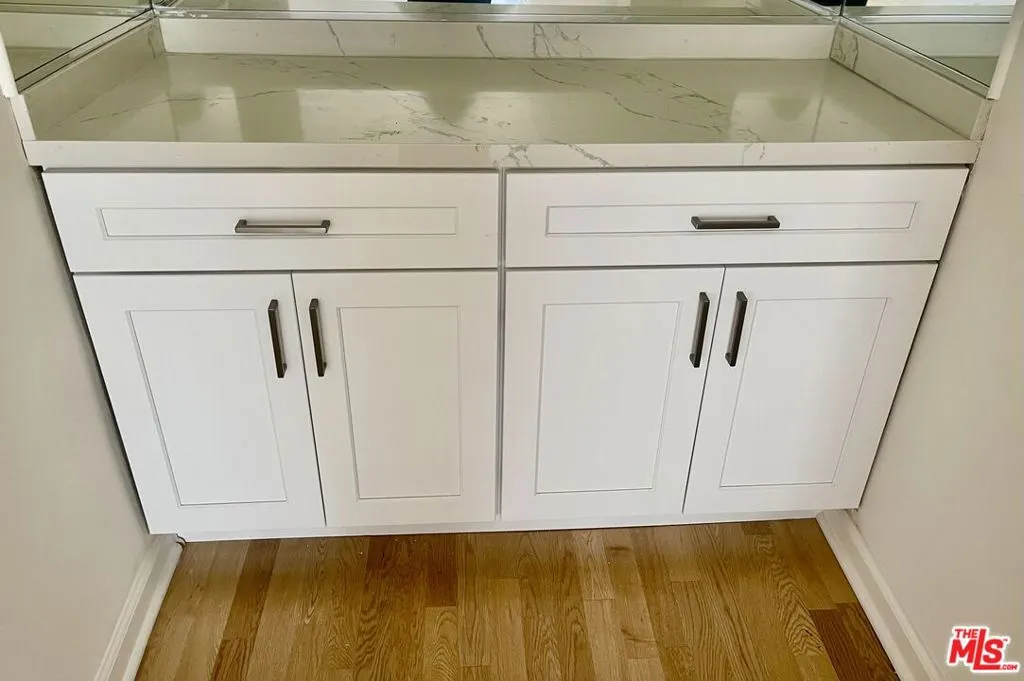 Vacant! Move into this spacious Bright and Sunny 1 bedroom, 1.5 Bath apartment located on a charming and quiet residential tree-lined street! Secured Building Entrance and an Automatic Gated Garage off Alleyway with tandem Parking Space, private Storage Area, and a community Laundry Room in addition to your own stackable Washer and Dryer “inside the unit.” This quiet Apartment Community consists of only 12 units with an onsite Resident Manager. Enjoy meandering walks on the sidewalks of this lovely, peaceful neighborhood. Fabulous location….Only a few blocks from S. Beverly Drive with its popular restaurants and boutiques and then, onto the famous Rodeo Drive and Wilshire Blvd. Enjoy afternoon tea at the nearby Peninsula Hotel. Shop at Century City, and you won’t carry your packages up the stairs, because this well-maintained building has an elevator! A block away, enjoy sports, activities or an afternoon of leisure at Roxbury Park and play games, attend classes or events at the adjoining, popular Roxbury Community Center. At the end of the day, leave the hustle and bustle of Beverly Hills behind, as you step into your serene home all on one level with Hardwood, Tile, and honed Creme Marfil floors. Spacious Living Room adjoins Dining Area. Step out on the Balcony off Dining Area that overlooks tree-top views in the daytime and city lights at night. Enjoy those same views from your sunny Kitchen window in updated galley Kitchen with Stainless Stove, Microwave, Refrigerator and Dishwasher. Kitchen features Quartzite countertops with splash backs of geometric decorator tiles. Off Entry Hall is a Powder Room for your guests with decorator vanity. Linen and Storage unit located in hallway leading to spacious Bedroom that adjoins doubled mirrored closets leading to Bathroom with Separate Soaking Tub and Shower and Decorator Vanity. As a resident, you will enjoy the charm, solitude, security and convenience of this lovely building!
