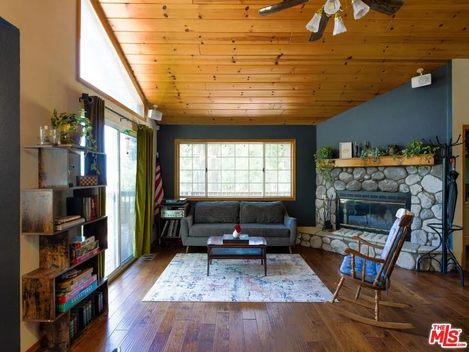 Step into unparalleled serenity and sophistication with this exquisite mountain home, a sanctuary that boasts awe-inspiring views and luxurious comfort. From the moment you enter, you’ll be captivated by the expansive openness and the majestic vistas that greet you.As you walk in, hang your coat in the spacious closet and descend a few steps to the heart of the home. The open living room, anchored by a stunning river rock fireplace, seamlessly flows into the dining area. Surrounded by large windows, the dining area offers a picturesque setting for meals, basking in natural light and panoramic views.The well-appointed kitchen is a chef’s delight, featuring top-of-the-line appliances and a large window above the sink that frames the secluded, long-distance views. The kitchen opens up to the cozy family room, creating a perfect space for entertaining or family gatherings. Step out onto the no-maintenance Trex deck and be mesmerized by the ever-changing views of Mount Baldy, Lake Gregory, and the High Desert. The sunsets here are simply spectacular.The spacious master bedroom offers a private retreat with its own deck, a luxurious bathroom, and a generous walk-in closet. Two more bedrooms, each with mirrored double door closets, provide ample space for family or guests. A dedicated laundry room and two full baths ensure comfort and convenience for all.Enjoy year-round comfort with forced air heating and air conditioning. Below the main level, a vast build-up area offers endless possibilities for storage, a workshop, or additional living space. Nestled on five contiguous lots, this property guarantees privacy and seclusion. The closest neighbor is set at a comfortable distance, enhancing the tranquility of your mountain haven.The owners have installed a private Spectrum pole, ensuring the best internet service for work or leisure. This makes the home perfect for a permanent residence, a vacation getaway, or a lucrative Airbnb rental.With excellent off-street parking and easy year-round access, this home combines seclusion with convenience. Surrounded by vacant land, you’re immersed in nature, yet close enough to neighbors for a sense of community.Priced to sell, this mountain retreat is more than a homeit’s a lifestyle. Experience the ultimate in mountain living with views that will steal your heart every day. Don’t miss this rare opportunity to own a piece of paradise! The property consists of 5 lots under the same assessor’s parcel number. The lots are 4, 5, 6, 7, and 26.