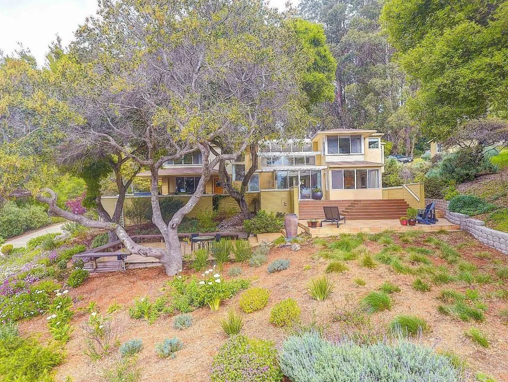 This architectural masterpiece was inspired by Frank Lloyd Wright and designed by local favorite and award-winning, Fred Lattanzio. The house features a modern layout with massive windows and skylights. There are beautiful views of trees and the grounds from every room. Spacious home with 3 bedrooms, 2.5 bathrooms, and 2,402 sq. ft. of living space. This stunning home is situated on 2.5 acres, in a beautiful, gated neighborhood. The home blends indoor luxury with nature, offering elegance in a country lifestyle. The back doors open to a tranquil, park-like setting with wooden decks and tiled patios. With its open floor plan, and ample outdoor living areas, it’s perfect for entertaining guests in style. The huge yard features beautifully landscaped gardens with native drought-tolerant plants, creating a sustainable and low-maintenance outdoor space. There is plenty of room to add raised beds. Youll love the end-of-the-road privacy and benefit of neighbors not too far away. This property is perfect if you love modern architecture and the outdoors. And it’s conveniently located between Watsonville and San Juan Bautista. It’s a short drive to the beach; Monterey, Santa Cruz, and Hollister are about 35 minutes away.