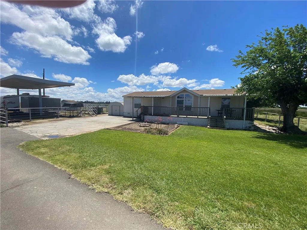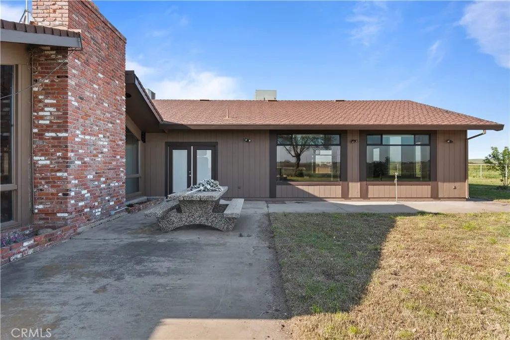 Price reduction! Are you looking for your own personal compound? Look no further, here it is. Over 68 multi-use acres suitable for farming, cattle, horses, recreation- you name it. Added bonus: Dual water source of MID irrigation water for the land/acreage in addition to well water for the two residences. It only gets better, with working corrals, a pole barn for hay storage, pipe and cable fencing and an electric entry front gate. The main house sprawls over 6300 sf in a Ranch Style design with an impressive porte cochere at the front that leads to the massive, solid copper double door entrance. Once inside the inviting space, you will be awed by the massive floor to ceiling fireplace in the grand living room. So much light fills the house make sure not to miss the huge solid wood beams that run the entire length of the living room ceiling. Did we mention it is a much-coveted single-story layout? Since you might not be inclined to leave your own personal oasis, we’ve got you covered. There is a permitted addition that can accommodate all the gatherings you can dream up. Parties, dancing, meetings, family get-togethers, this house can host it all with the oversized addition you have to see to believe. If the main house isn’t enough square footage for you, there is the addl manufactured home