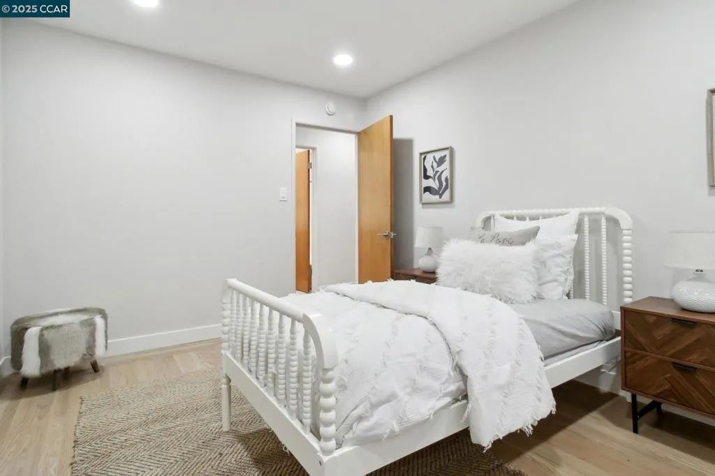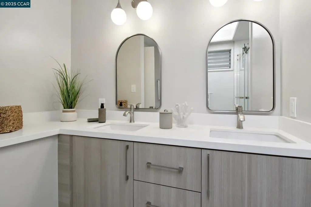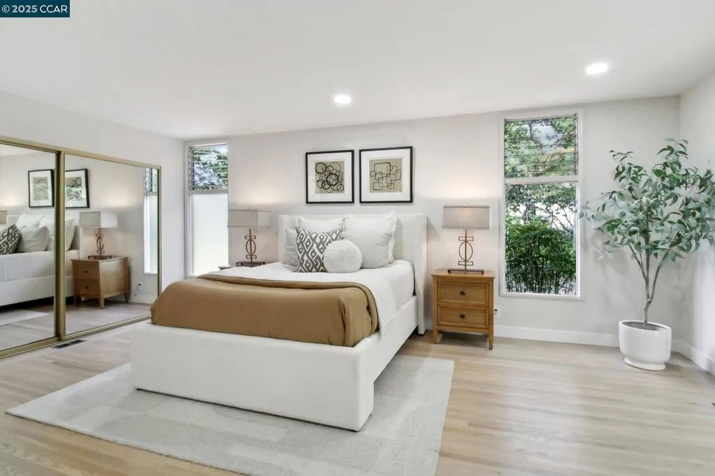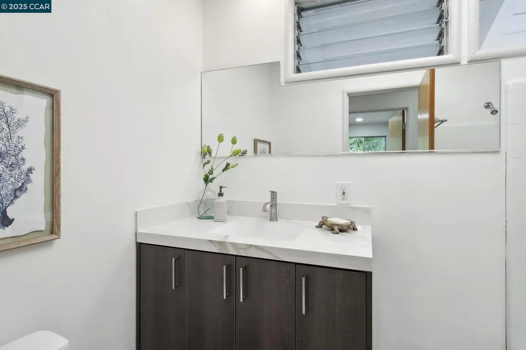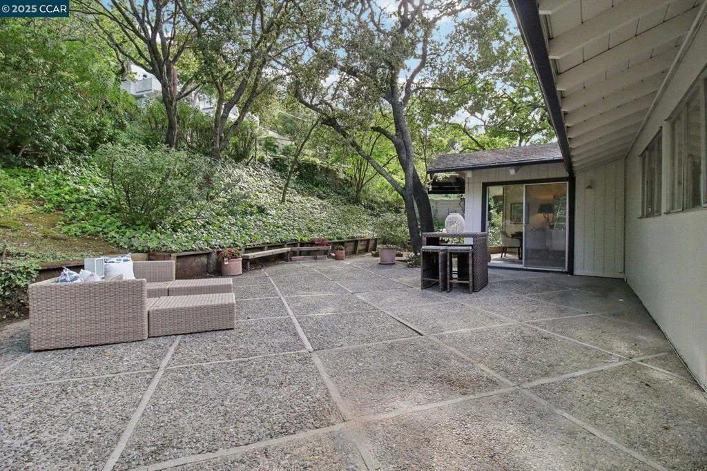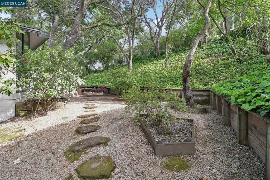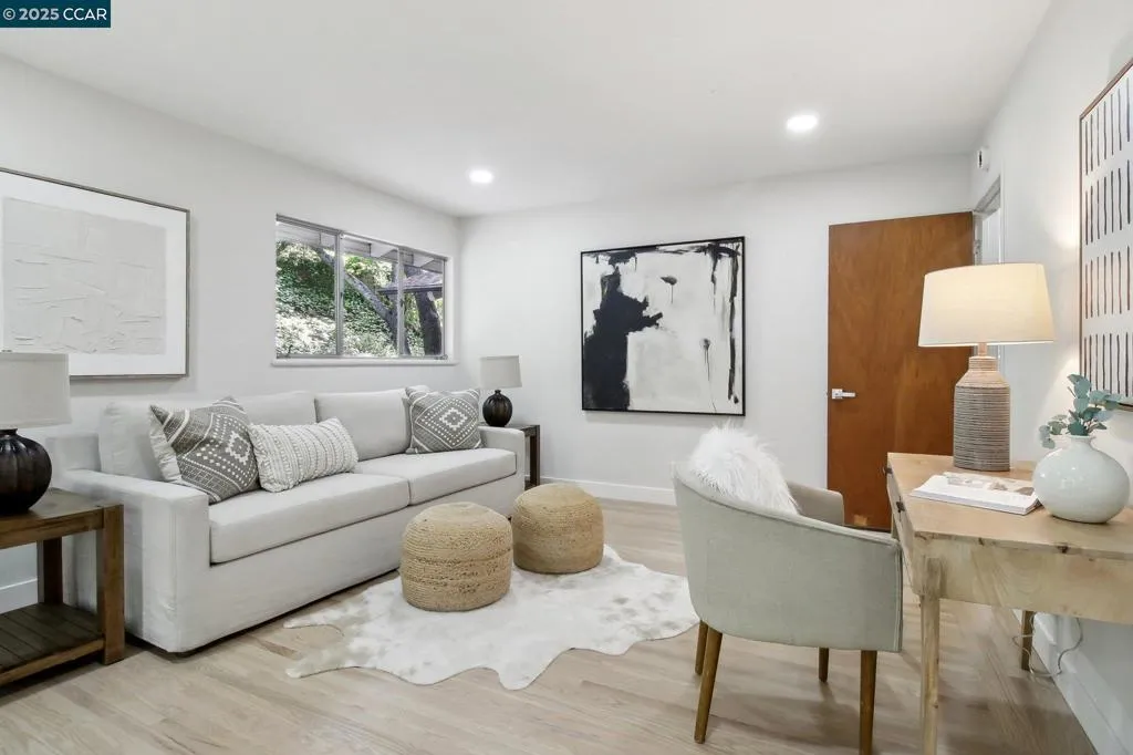 Amazing Value in Orinda! This stunning 3-bedroom, 3-bath home offers 2,486± sq ft of beautifully renovated living space on a private 0.28-acre lot. The main level showcases a dramatic formal living room with a wall of floor-to-ceiling glass, sleek gas fireplace, and seamless flow into a brand-new chef’s kitchen featuring European cabinetry, quartz counters, new stainless steel appliances, and an induction range. The large dining rm is encased in more glass with yard access. The spacious primary suite is adorned with windows, seating area, and a spa-like bath with dual sinks and an oversized walk-in shower and completing the main level. Downstairs, discover a versatile and convenient kitchenette, cozy family room with fireplace, large bedroom, and full bath — ideal for multigenerational living, an au pair suite, or potential attached ADU/rental opportunity. Mature backyard landscape with coveted flat space and corner privacy. Every detail has been thoughtfully updated, including new kitchen, bathrooms, flooring, cabinetry, counters, lighting, and interior/exterior paint. Great location offering ultimate privacy while being close to town, schools, and commute routes.