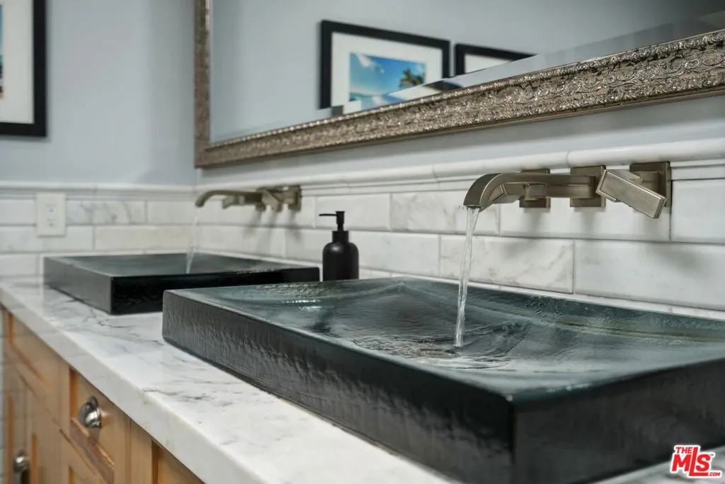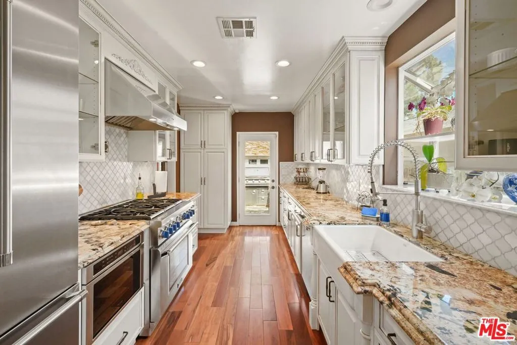 This beautiful home-sweet-home, is ready for you to move in! Location? It’s centrally located in Valley Village, with private and serene back and front yards. The back of the house features heated salt-water pool and spa, surrounded with bamboo, there are two separate BBQ areas! Currently on Airbnb earning over $100K annually. This private oasis, tastefully and beautifully done, awaits you and your guests. The home features 3 bedrooms, 2 full bathrooms, a powder room, family room, living room, dining room, and a Chef’s kitchen displaying a beautiful backsplash. The house UPGRADES’ feature New Presidential shingle roof, tankless water heater, pool Aqualink System, new Hayward pool heater, water filtration system, whole house water filter, security gate with intercom system, Dave-Lennox HVAC, New A/C unit, R-38 insulation in attic, copper plumbing, solar panels, Brazilian koa flooring throughout the house, exterior video cameras, ADT security system and Nest Thermostat. As you come in through the front yard, featuring Ranchio-Smart sprinkler system, stone veneer, and a mature willow tree, you’ll find a well manicured grassy area, perfect for pets. A long driveway with gate, and space for about 4 cars PLUS a detached garage with ADU potential. The living room welcomes you through a sitting-front porch area. As you enter, you’re welcomed by beautiful koa flooring throughout and a fire place. The Chef’s kitchen, featuring a beautiful cooking setting, with Thermador appliances, includes a six-burner stove with oven, microwave, farmhouse sink, and a generous refrigerator. The kitchen back door gives you access to a BBQ grill, while the family room gives you access to the back private pool area, featuring a spa and covered large BBQ Perquilla-patio, with a fireplace and a fan, where you can place a large table with 8-10 chairs, for entertainment. This area features a propane BBQ, and a charcoal BBQ with additional burner. The main bedroom features large wall mirrors, offers double-door access to spa and pool, a large walk-in closet with built ins, and a very generous beautiful bathroom with heated-marble floors, a floating double sink area with lighting underneath and a large skylight. The shower features three shower heads, marble bench and natural pebble floor. The other two bedrooms are located on the west side of the house, sharing a full size bathroom. This is a great and desirable location, with easy access to the 170 freeway, a couple of blocks away from Oakwood School Secondary Campus, NHSS, Colfax Charter Elementary School, and just a short distance from NoHo Arts District, parks, great restaurants, Universal Studios and more! Great for you to live in, or AS AN INVESTMENT PROPERTY! This is a 1031 Exchange.