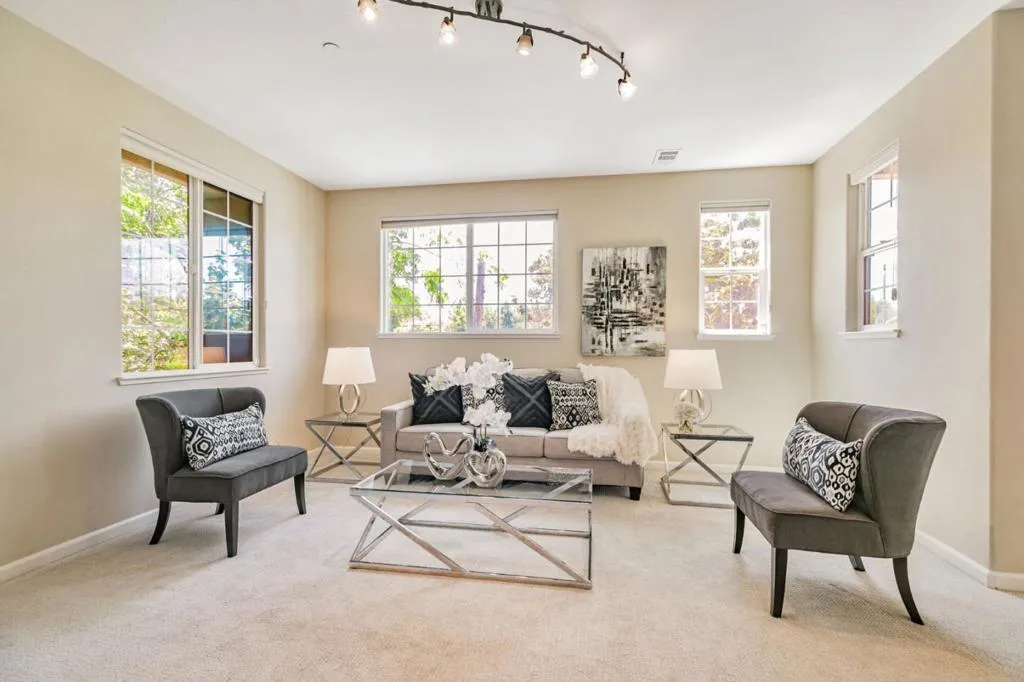 Lovely, bright end-unit townhome in the Almaden Walk Community of Willow Glen. 2.5 walls of windows for natural light exposure, great afternoon sun! Sunset can also be seen from the bedrooms. High ceilings, neutral decor, natural wood cabinetry, and plentiful windows on all levels produce a refreshing interior ambience. Comprised of three levels: the entry/garage level, main living level with living room, dining area, kitchen & powder room, and the upper level, with Primary bedroom (with dual sinks & large walk-in closet) plus second ensuite bedroom and utility closet. The kitchen is a culinary delight, complete with a gas oven range, microwave, dishwasher and new fridge. Ample granite counters provide enough space to make meal preparation a pleasure. Central AC ensures a pleasant atmosphere throughout the seasons. Upstairs inside laundry area w/ New washer/dryer. Extra storage in the garage w/ ceiling mounted racks. Close to DT Willow Glen, Oakridge Mall, Costco, Hwy 87/85, Curtner Light Rail, Apple & other tech giants. In addition to the 2-Car garage, there are 2 extra parking spots in the back (2 parking permits). So not just the street parking you see in front. Need more on occasion? Reach out to the other residents via the FB community page to share more passes on occasion.