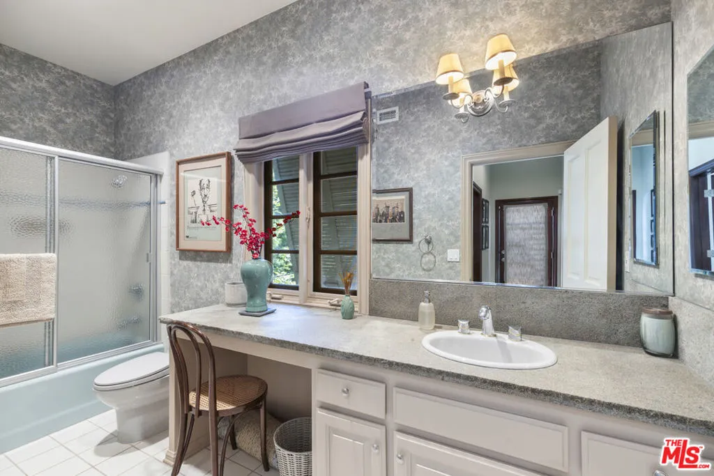 Located in the heart of Mandeville Canyon, this serene Mediterranean-style estate rests on nearly 2.5 acres of gated, private land. Encompassing five beds and baths, the light-filled residence is surrounded by mature landscaping, lush hillsides, and the peaceful sounds of nature. A welcoming foyer with double-high windows leads into the main living area, where soaring ceilings and a fireplace create a warm and inviting ambiance. Additional sitting areas and elegant spiral staircases connect the home’s thoughtfully designed layout. The formal dining room flows seamlessly into a charming breakfast nook and a well-appointed newly updated kitchen, featuring quartz countertops with Wolf and Sub-Zero appliances including skylights that fill the space with natural light. The spacious primary suite includes a walk-in closet and a spa-inspired bathroom with dual vanities and a separate jacuzzi tub. The property also offers two full laundry set-ups. Outdoors offers a true retreat, anchored by a majestic 300-year-old oak tree and surrounded by expansive gardens, shaded pathways, intimate seating areas including a vegetable garden. The two car garage includes an additional kitchen, perfect for catering events and large parties. The newly updated pool and jacuzzi include generous patio spaces providing the perfect setting for entertaining or quiet relaxation, all just minutes from the best of Brentwood and the rest of the Westside’s offerings.