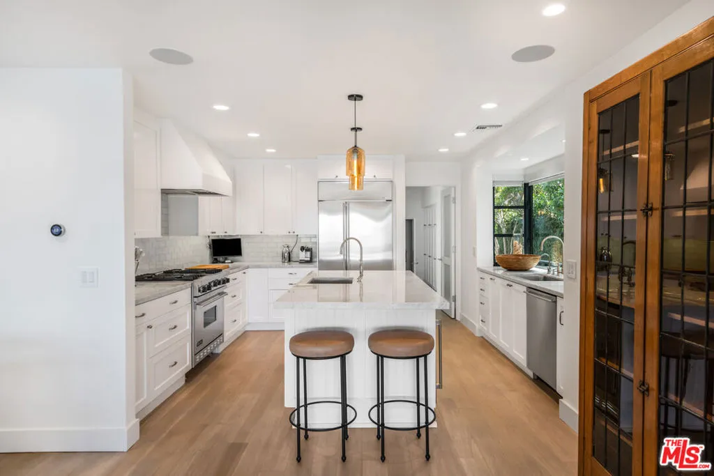 Perched on Birdview bluff above scenic Westward Beach, this light-filled contemporary residence has the amenities of a vacation resort and the deeply rewarding comforts of home. Commanding sweeping ocean and island views, the approximately 0.57-acre property is richly landscaped and terraced, with balconies, decks, and patios. From the gated entry, the long drive passes a pickle ball court with stadium lighting and a swimming pool and spa in a very private garden setting with a wide flagstone pool deck for lounging. The drive ends in a motor court with ample guest parking, and the home opens to reveal breathtaking ocean views from a stunning great room. With cathedral ceilings, a corner fireplace, a window seat, beautiful wood floors, and handsome built-ins, the great room has expansive ocean-view windows and glass doors that slide away to provide seamless access to the wraparound deck for al fresco dining and entertaining. A lovely dining area shares the views, and the professional chef’s kitchen is just beyond, featuring an island with bar seating, marble countertops, a beverage cooler, quality appliances, and a wide garden-view window above the sink. Off the kitchen is a mud room with a door to the side garden where there is a water feature and an outdoor shower. Also on the entry-level are two bedrooms, a full bath, and a powder room. Steps near the front door lead down to the ocean-view primary suite, which occupies the entire lower level. This private haven has a sitting area with a fireplace, closet, generous built-ins, and a wall of glass opening onto a partially shaded patio and gorgeous ocean views. The primary bath, which also has ocean views, has a door to the backyard as well as access to an additional storage/closet/laundry room. On the ocean side of the house, the backyard provides numerous options for entertaining and relaxation, with a large flagstone patio, a lawn, a firepit area with seating surrounded by a mature succulent garden, and a deck with sitting areas that overlook the beach, the waves, and views to the horizon. The home has central air conditioning, a two-car garage, outdoor irrigation, and a full complement of smart-home features, including automated window shades, Sonos sound, and security. This is an estate of exceptional quality and comfort. Available for lease $40,000 per month.
