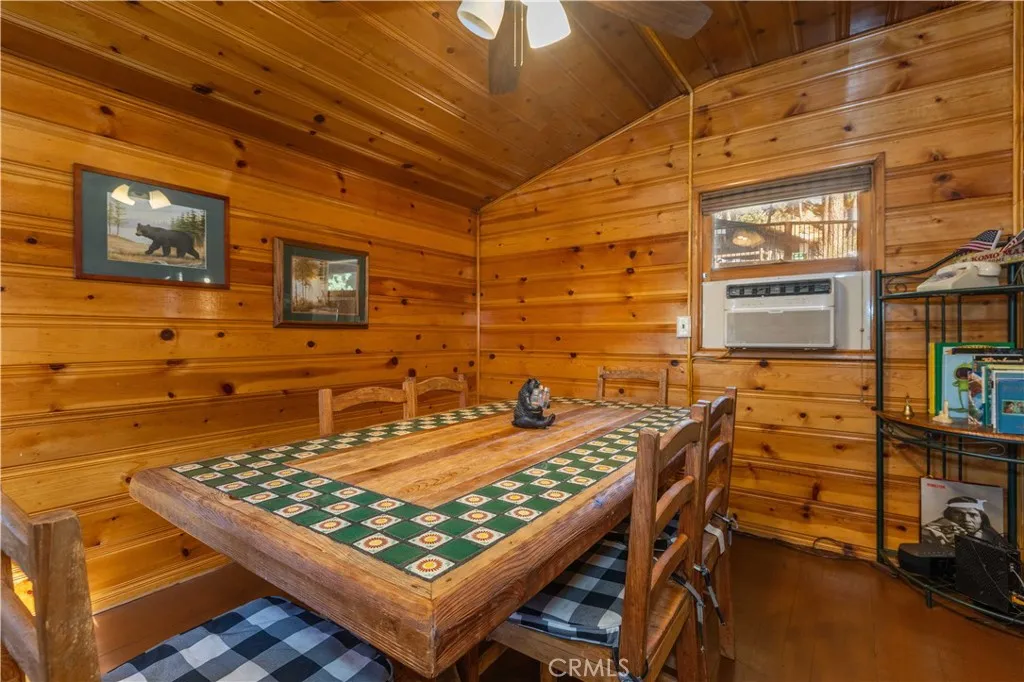 Escape to this charming mountain cabin nestled among the pines in the desirable Moonridge neighborhood—just two minutes from Bear Mountain and the newly revitalized Moonridge Corridor. This cozy retreat offers 2 bedrooms, 2 bathrooms, a dedicated dining area, and a spacious family room with rustic wood T&G accents and a classic wood-burning fireplace. Step outside to unwind on the expansive deck or soak in the private spa surrounded by serene forest views. The partially fenced yard, basement with washer/dryer and extra storage, and level parking pads make mountain living easy. Whether you’re looking for a peaceful getaway or a proven income-producing vacation rental, this cabin delivers. Laundry down below! Estimated annual rental income: $42,600. Proforma available upon request.