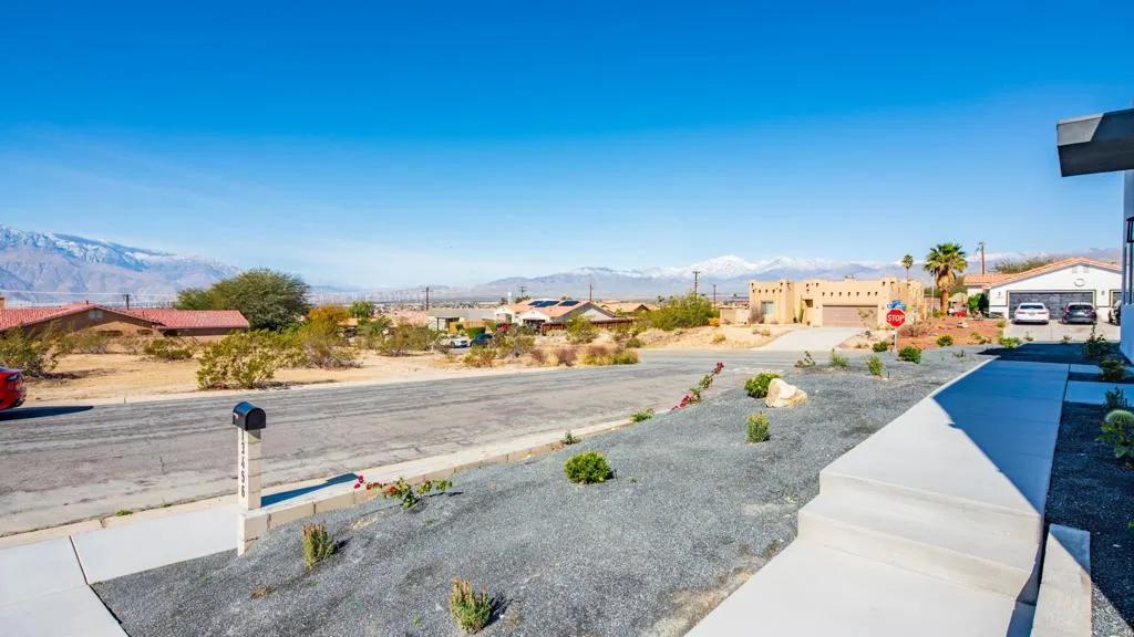 Wake up to stunning, front-facing panoramic mountain views every day in this beautifully designed new construction home! With 1,710 sq. ft., this 3-bedroom, 2-bathroom home offers an inviting open-concept layout, perfect for modern living.The spacious kitchen features ample counter space, a large island, and abundant natural light, creating the perfect space for entertaining or enjoying quiet mornings with a view. Large windows throughout the home bring the outdoors in, enhancing the airy, bright feel of the space.The primary suite is a true retreat, featuring double vanities, elegant under-vanity lighting, and plenty of storage. A dedicated indoor laundry room adds extra convenience, making everyday living effortless.Located just minutes from grocery stores, world-class spas, and only 20 minutes from downtown Palm Springs, this home offers both convenience and tranquility.But the true standout? The unparalleled mountain views that create a breathtaking backdrop from sunrise to sunset. Don’t miss the chance to own this desert retreat–schedule your showing today!