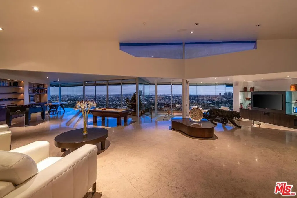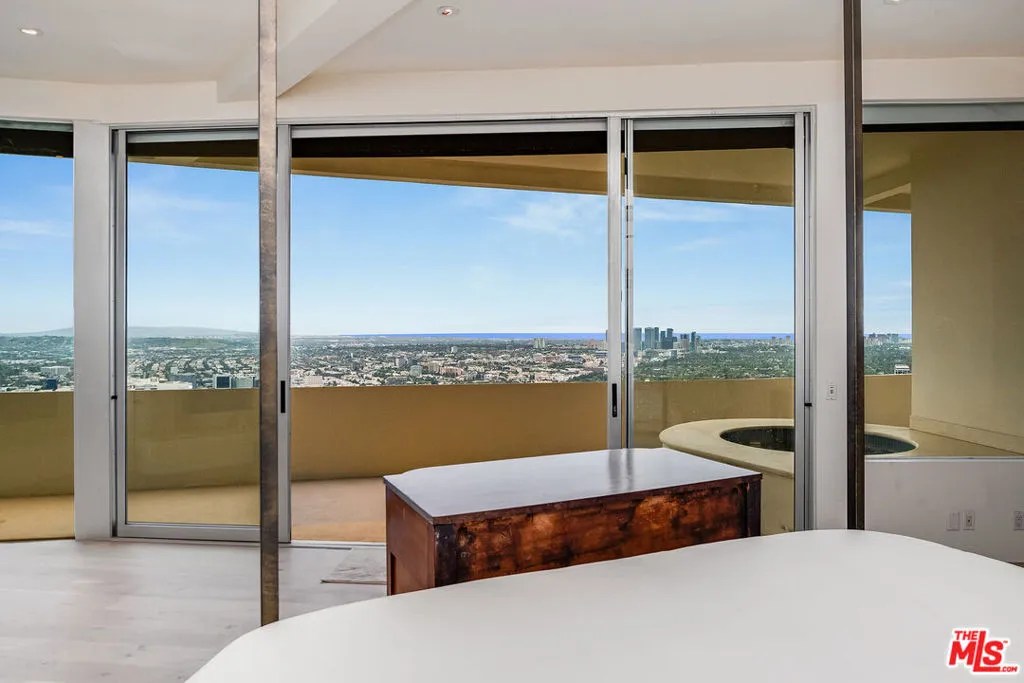 Situated in one of Los Angeles’ most desirable locations, minutes from LA’s best dining, shopping, theaters & museums. Perched atop the Sunset Strip and nestled on a quiet cul-de-sac. Completely, custom built of concrete, steel & glass. Three levels with 14′ walls of glass & terraces boasting jaw dropping, truly panoramic views, stretching across the entirety of Los Angeles, encompassing the Griffith Park Observatory, Downtown LA, Catalina, LAX, Century City, Westwood, all the way to the Getty Center. Exquisite European materials, hardware & craftsmanship, throughout. Light & bright, flexible, open flowing space make up the living room w/fireplace, dining, office space w/ built-in book cases, pool table & step down family room with built-in media center and entertainers serving bar, all boasting seemingly endless City to Ocean views. Beautiful, custom, gourmet chef’s kitchen with breakfast nook featuring a built-in table and banquette seating. Double, stainless Wolf ranges, with extra large griddle, double stainless Sub-Zero fridges, 148 bottle wine fridge, BBQ-charbroiler, & large, gorgeous, illuminated granite center island complete with bar seating and prep station including: trough style sink & cutting boards. Master suite with “Four Seasons” style marble bath, walk-in closet & private terrace with hot tub overlooking the city. Two additional family bedrooms & bathrooms. Lower level gym with steam & sauna, currently being used as 5th bedroom. Additional features include: Limestone & blonde hardwood floors, water filtration system, audio & video wiring, Lutron lighting system, electric blinds, security system with cameras, and fabulous, 16 x 69′ full size swimming pool & sundeck, overlooking the entire city. Cul-de-sac provides for plenty of safe, unrestricted street parking. Unfurnished possible for long term at higher rental rate. Attached, but, completely separate & private guest unit with it’s entrance, currently being used as storage by Owner, can be included for $35k total per month.