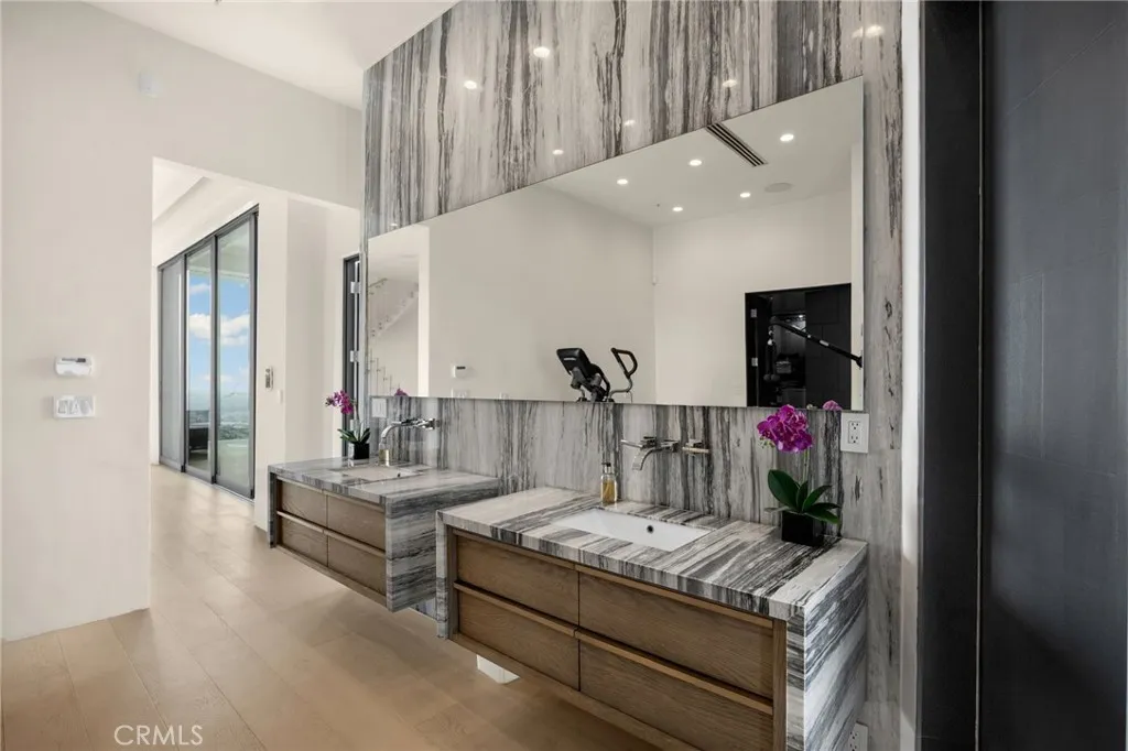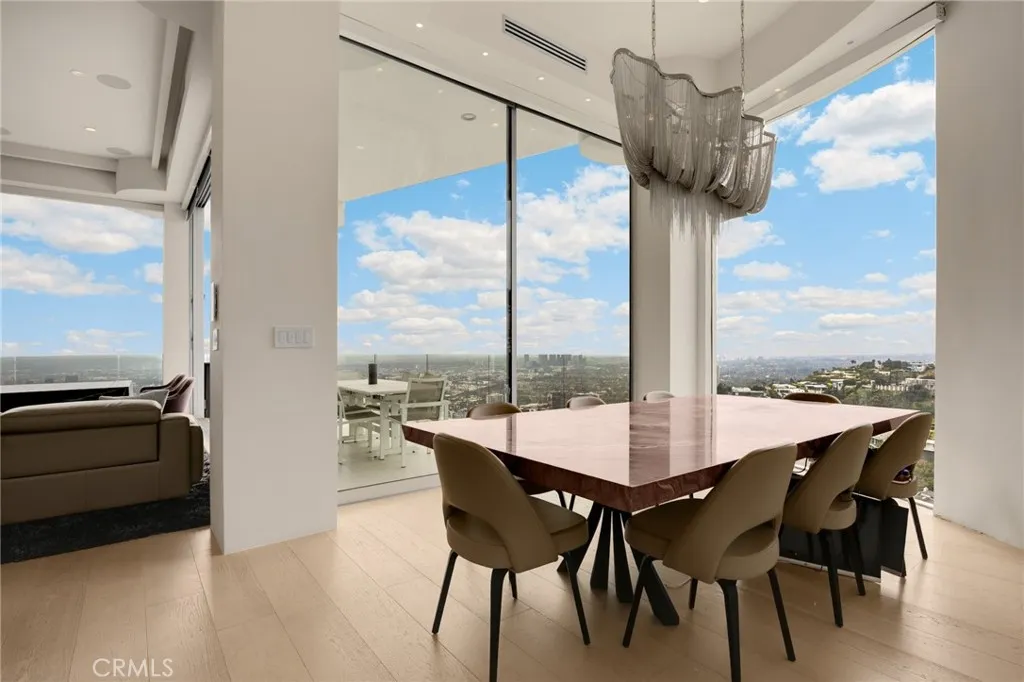 Sitting high atop the world famous Sunset Strip, the first thing you notice when you enter this three bedroom, three and a half bath masterpiece is the breathtaking citywide views of Century City, Hollywood, Palos Verdes and on a clear day; the Pacific Ocean and Catalina Island. Once inside, the incredible amenities are everywhere: Three floors, each with their own private decks and gorgeous views. Miele appliances and Japanese toilets throughout. A built in 65″ television with a retractable interface. A high end Savant Home Security System, along with a two car garage. The house is perfect for entertaining and boasts a thumping, high end, club level Home Sound System with Klipsch speakers throughout the entire house. External and internal color lighting system that can be changed with a push of a button. The primary suite is the entire bottom floor and comes complete with a large soaking tub, Tonal workout gym system (membership not included) and elliptical machine, massive walk-in closet and instant access to the stunning infinity pool, hot tub and gas fire pit that overlooks all of Los Angeles. Centrally located in the Hollywood Hills West means easy access to all the countless amenities found in West Hollywood, Beverly Hills, Westwood and the entire Westside.