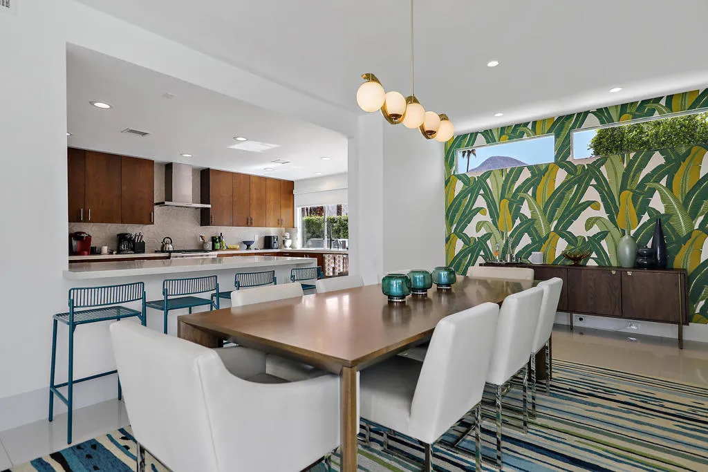 Presenting an Indian Wells – Mid Century 4 bed 4 bath including a private casita that is a true masterpiece. Every detail of this meticulously designed property has been carefully considered, from the reimagined chef’s kitchen to the expanded dining room and awe-inspiring master bath. Step inside and be greeted by brilliant white porcelain floors that perfectly complement the walls of glass, seamlessly merging the indoor and outdoor spaces. Prepare to be captivated by the breathtaking views of the lush backyard, adorned with Meyer lemon, lime, and pink grapefruit trees, a glistening pool, and a majestic mountain backdrop. The patio is a haven of tranquility, ideal for unwinding and hosting memorable gatherings.Adjacent to the pool and fire pit area, an attached casita offers a private retreat. Additional highlights include two guest suites, a double car garage, and a golf cart garage, ensuring convenience and ample space. The home effortlessly harmonizes modern aesthetics with the timeless allure of its era, creating a stylish and inviting atmosphere.As a tenant, you will relish in the exclusive privileges of Indian Wells, encompassing world-class shopping, exceptional dining experiences, rejuvenating spas, and access to prestigious golf courses. With its irresistible charm and remarkable features – make this is your perfect vacation getaway.