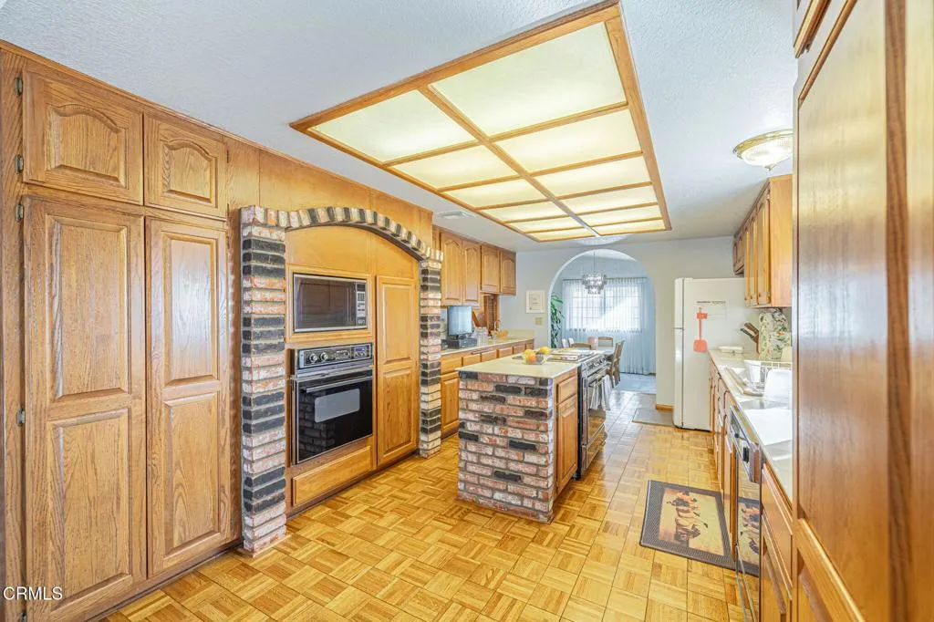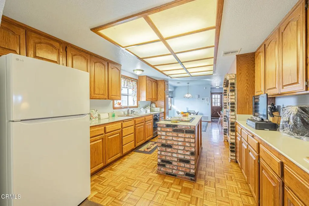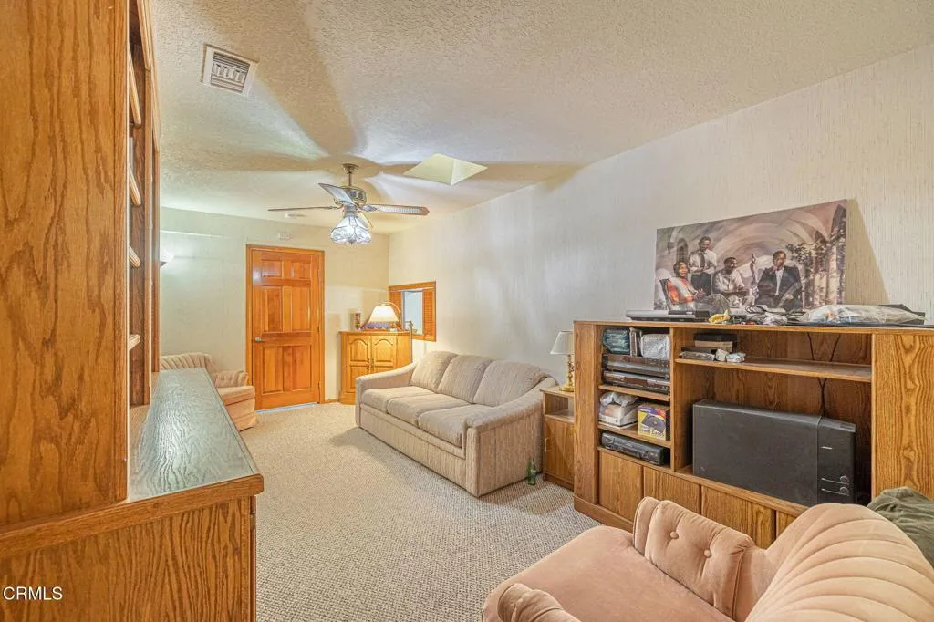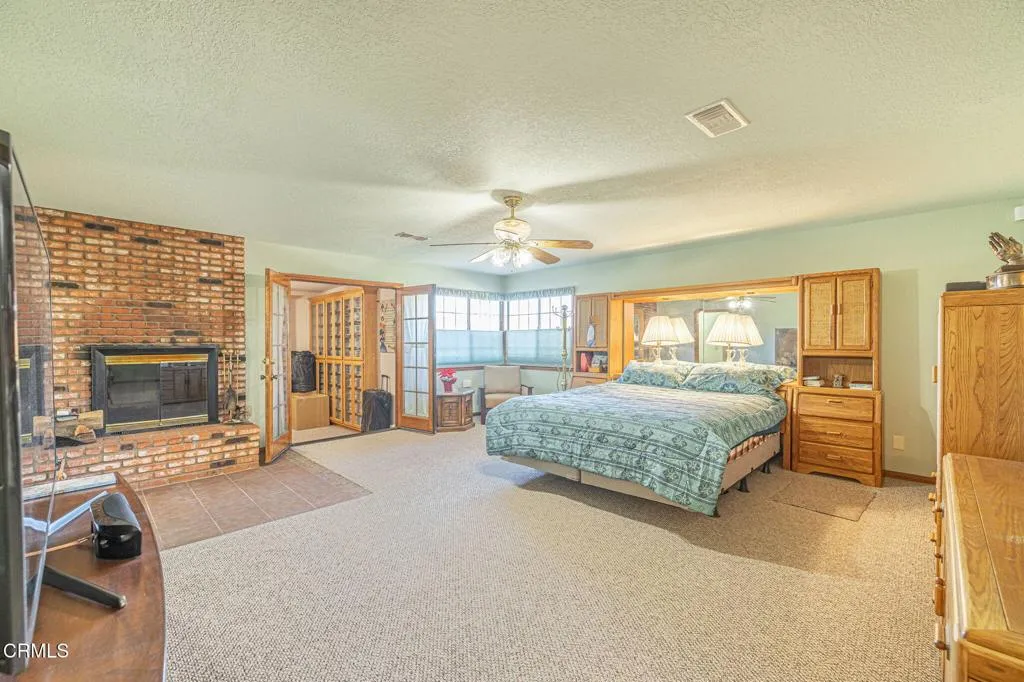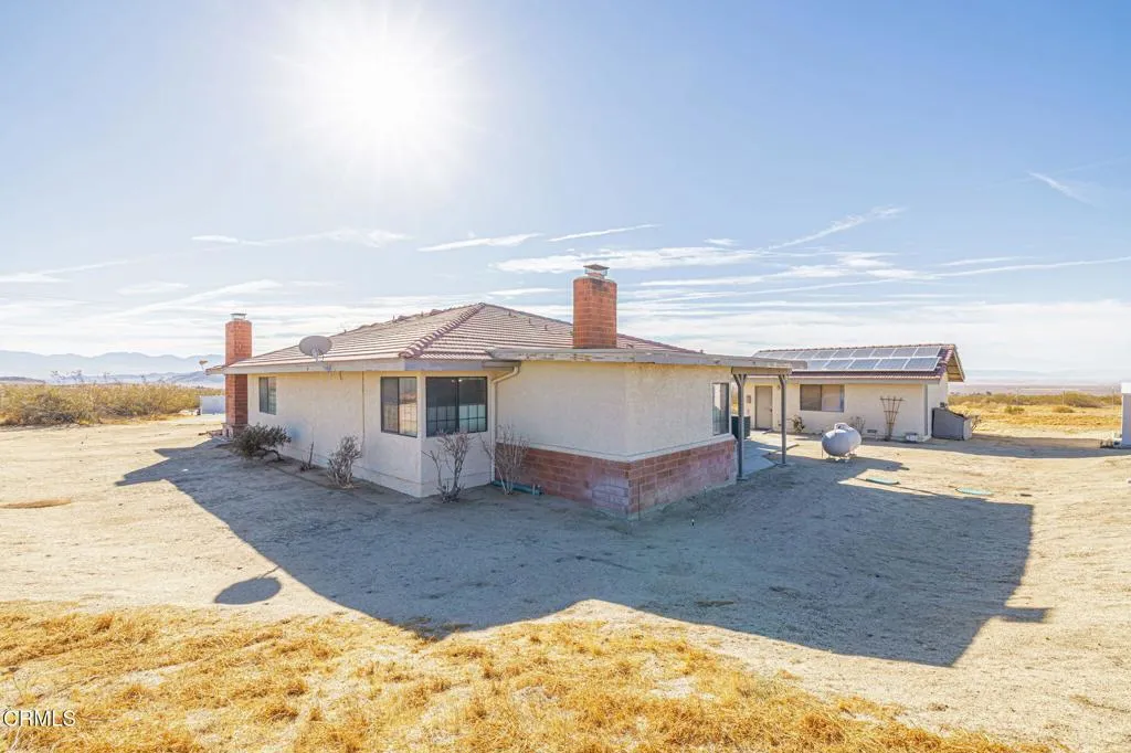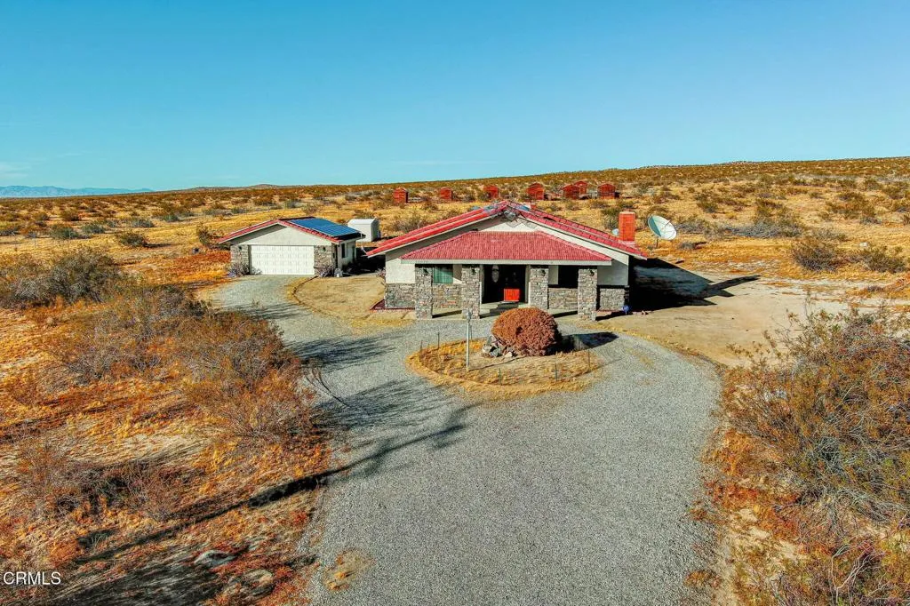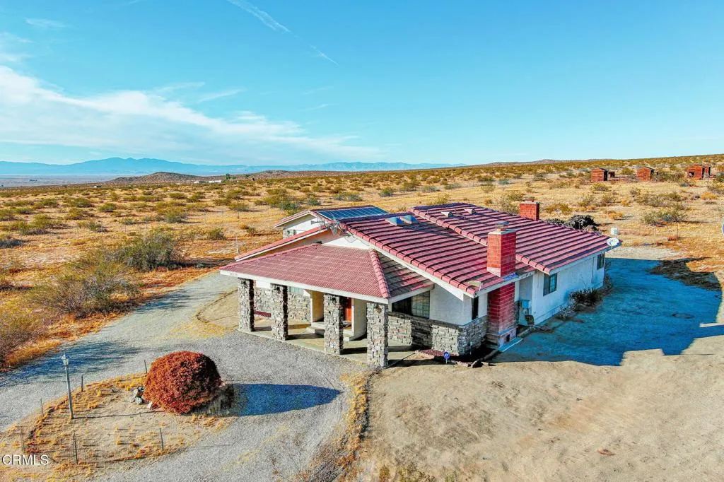 This beautifully custom built home rests on almost 10 acres of land in Lancaster, California. As you step inside this two bedroom, two and one half bathroom home, you are greeted by a spacious living room and formal dining room. The perfectly illuminated kitchen highlights the two ovens trimmed in brick, a four burner stove, dishwasher, a large island, oak cabinets, a built-in desk and parquet flooring. The primary bedroom features a brick fireplace, sitting room and walk-in closet. The en suite bathroom is complete with a built in dressing cabinet, jacuzzi tub, a separate shower and two vanities. There is a laundry room and a half bathroom at the rear of the home. In addition to the picturesque views, this property features a two-car garage with storage, 38 solar panels (fully paid), several out buildings with electrical and water, a propane tank and countless opportunities with its vast acreage of land.