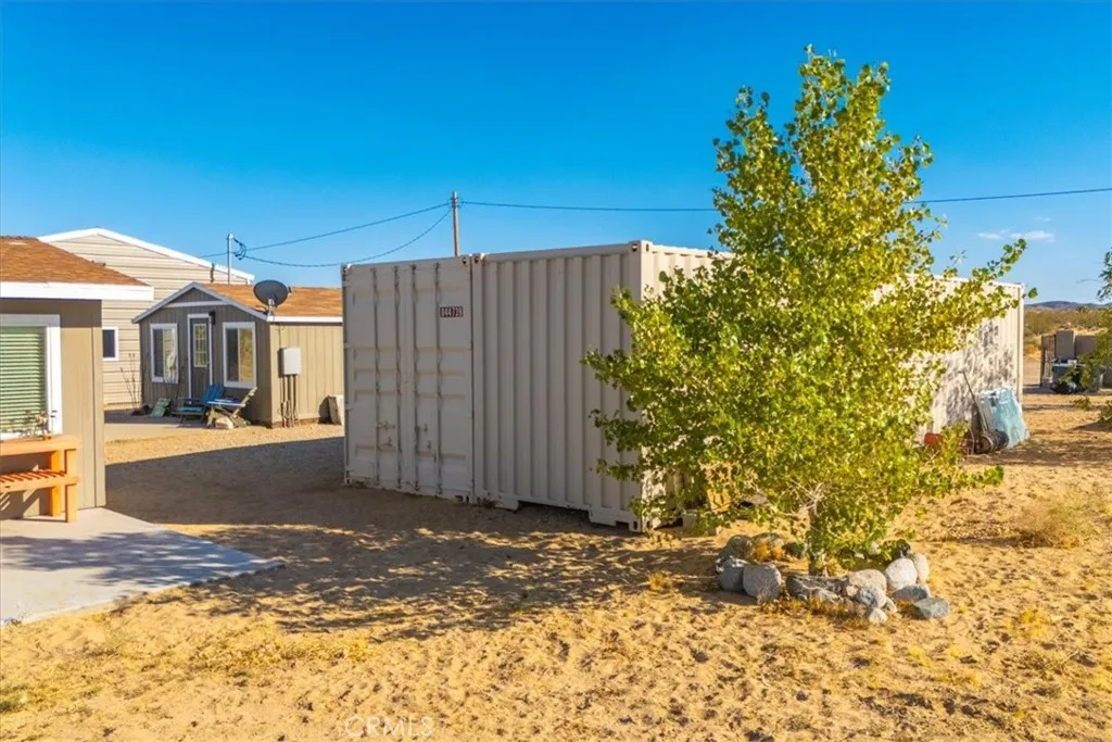 Eco-friendly living is made easy with PAID OFF solar panels for the greenhouse and the main house are solar ready (the meter and house) providing sustainable energy to the home and little to no electricity bill. Additional features include two spacious shipping containers for storage or creative use, a greenhouse for gardening enthusiasts, and a large 3 car/RV garage and workshop, offering ample space for projects, vehicles, and all your desert toys where you can take off and ride straight out of. Embrace the wide-open desert beauty and make this unique property your home.