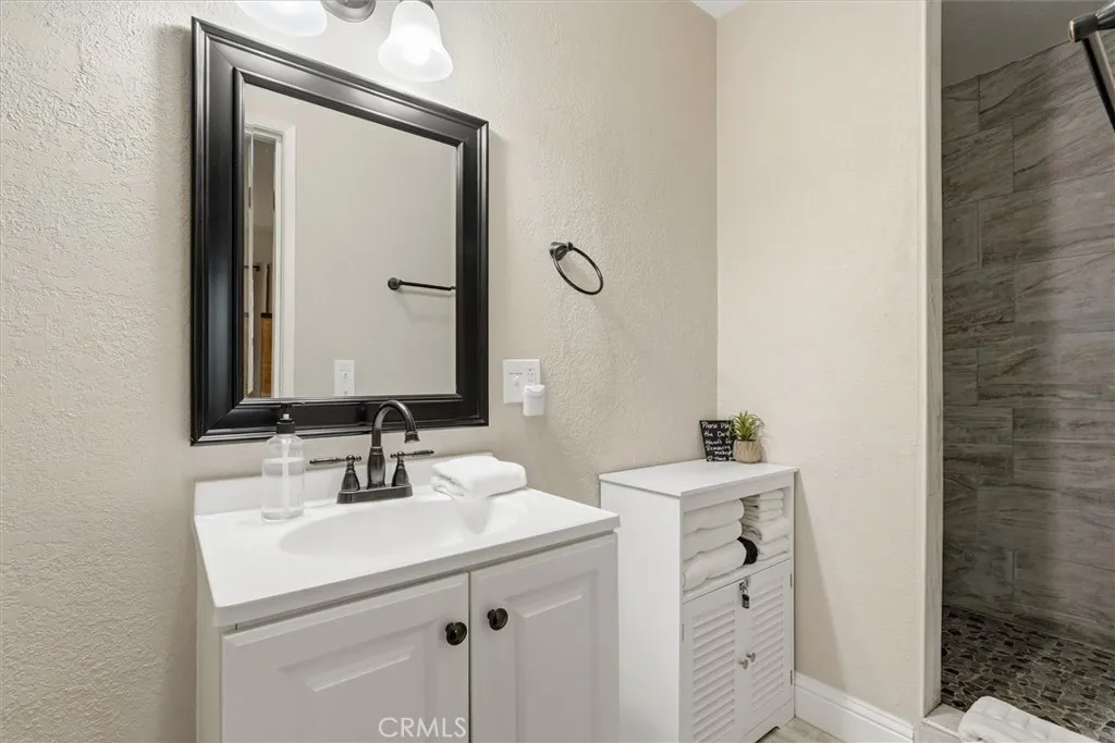 Down the hallway, you’ll find a convenient laundry area and two bedrooms, each with its own ensuite bathroom. Both bathrooms feature recently installed walk-in tile showers and granite countertops. Off the main living area, an additional guest bathroom with a tub/shower combo and two more bedrooms provide comfortable accommodations for family and visitors.