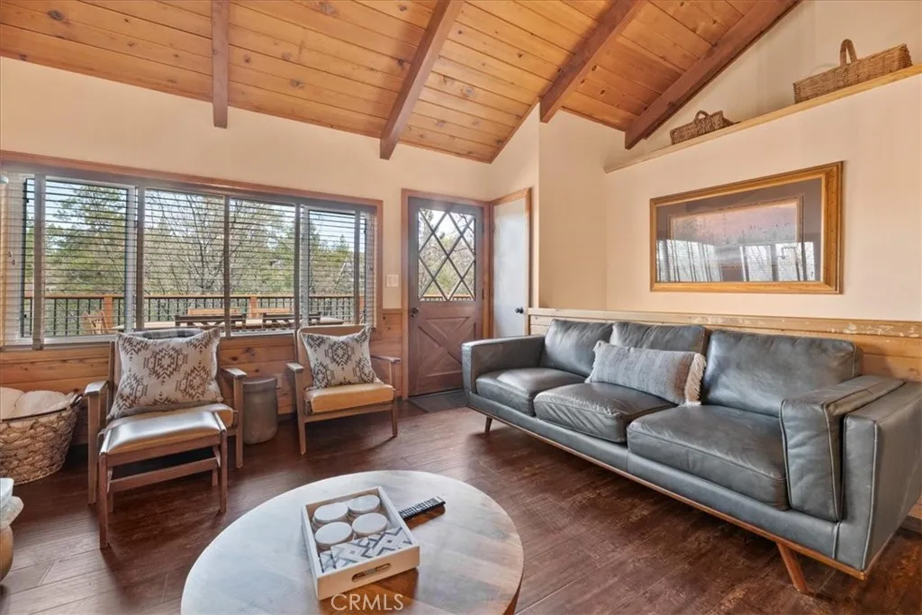 Escape to the mountains in this beautiful turnkey 3-bedroom, 2-bathroom Moonridge retreat, offering the perfect mix of charm and modern comfort. Tucked away for privacy on a large lot, and surrounded by soaring pines, this open-concept home features two impressive stone fireplaces, vaulted T&G ceilings, and a warm, inviting ambiance throughout. Enjoy year-round comfort with a mini-split system and forced air heating.