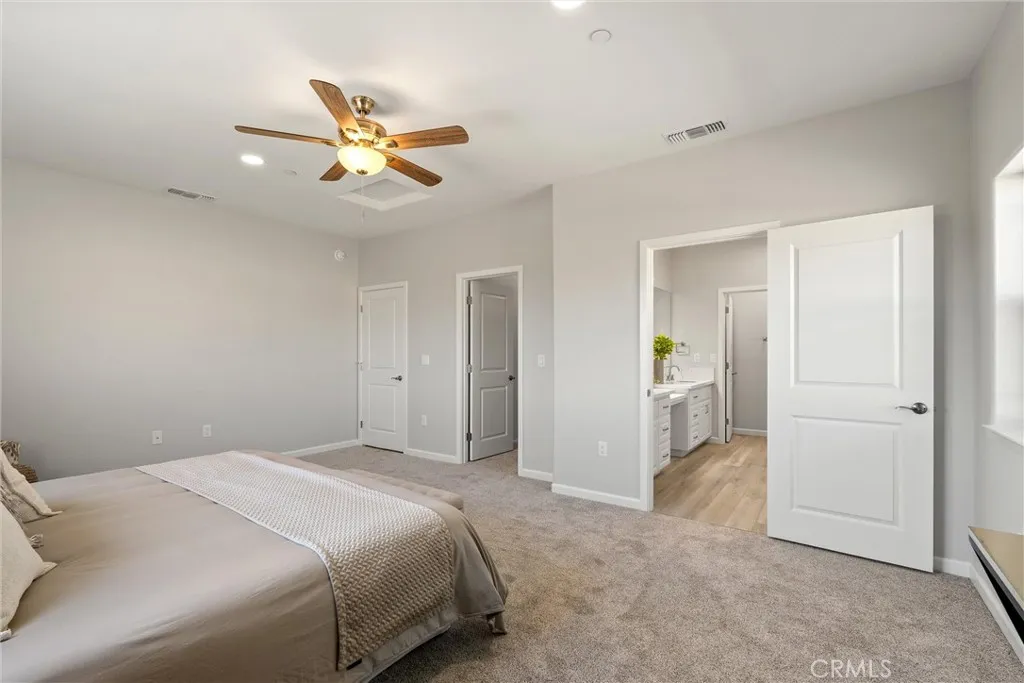 Both guest bedrooms, located opposite the primary bedroom, feature walk-in closets, ceiling fans, carpet & custom lighting, dedicated bathrooms with one having an ENSUITE GUEST BATH.