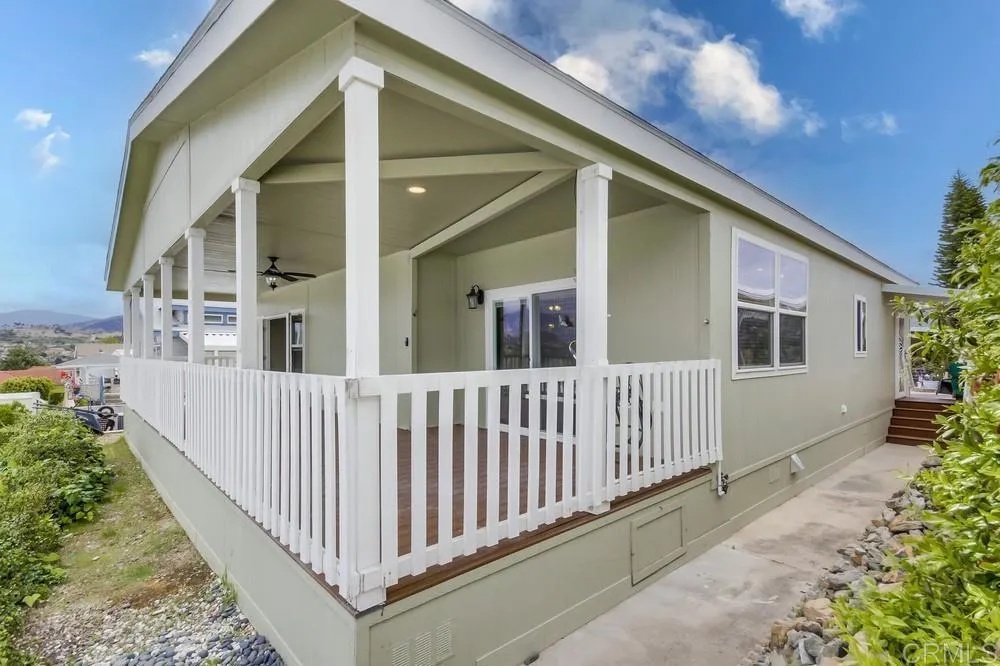 Welcome to 9500 Harritt Rd #63 in the highly sought-after 55+ community of Lake Jennings Park Estates! This stunningly newer home offers breathtaking panoramic views of Lake Jennings, best enjoyed from the expansive covered porch with ceiling fans and custom lighting—perfect for morning coffee or evening sunsets. Inside, you will fall in love with the gorgeous kitchen featuring two pull-out dishwashers, a large island with bar-height seating, extra large gas range with grilling capacity, stainless steel appliances, recessed lighting, and a walk-in pantry. The beautiful custom stacked stone wall with custom lighting in the living room adds to the ambience of this home as well as solar tube lights throughout. All interior pocket doors add to the open concept floor plan and spacious living area. The primary suite boasts French doors with interior shades leading to the patio with large windows on either side, a walk-in closet, and a spa-inspired on suite bathroom. Parking is a breeze with a tandem carport plus a second driveway adjacent to a generous storage shed. As an extra bonus, there is a chair lift for easy access into the home from this additional parking space. Laundry room with large stainless steel washer/dryer and extra cabinets for storage. Situated in a rare community where you OWN your land, enjoy low HOA dues of just $213/month and a lifestyle rich with amenities: a year-round heated pool, spa, sauna, clubhouse, library, game room, dog park, and a vibrant social calendar. Conveniently located in Lakeside, CA, you’re just minutes from shopping, dining, hiking trails, and only 25 minutes to San Diego’s beaches and mountain getaways. Don’t miss your chance to live in one of East County’s most desirable communities—schedule your private showing today!