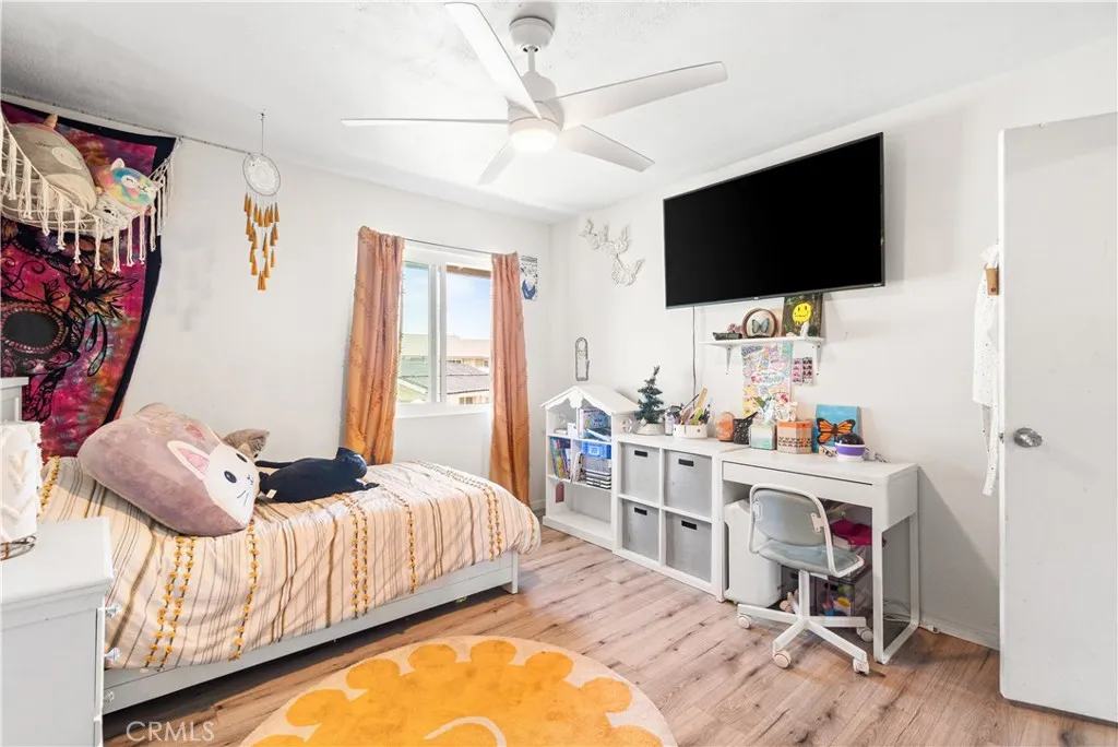 1 bedroom in 1st floor, all bedrooms has ceiling fans in the second level, laminate flooring, ceiling fans, main suite with bathroom, ample closet space.