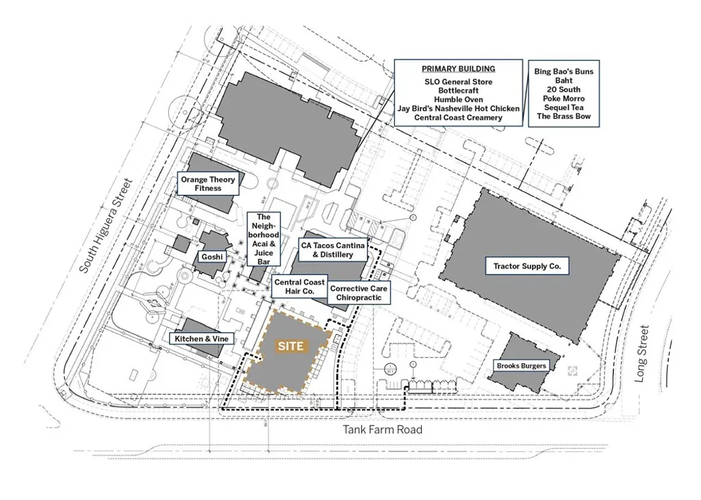 Become one of the anchor tenants in the dynamic San Luis Obispo Market at Bonetti Ranch. Located at the corner of Tank Farm Road and South Higuera Street; one of San Luis Obispo’s major traffic corridors. The space is free-standing and is adjacent to the SLO Public Market courtyard with its many restaurants and retail neighbors.