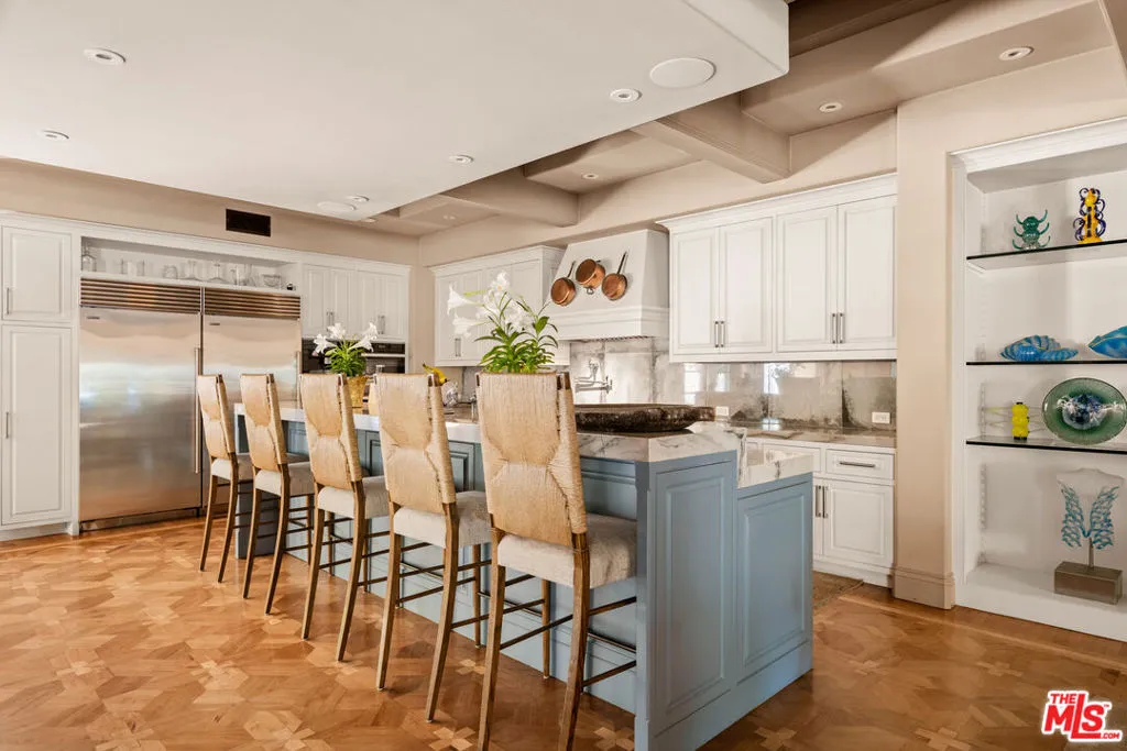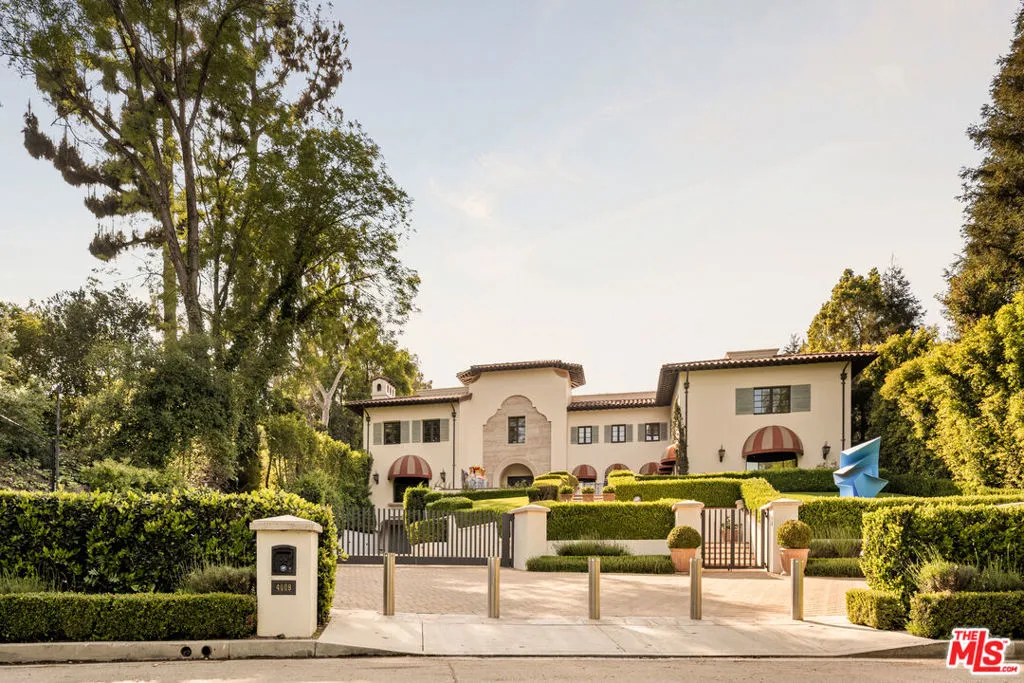 An Estate Fit for a Titan of Industry. Set high above the street behind incredible secure gates, this commanding European-style “Armani Casa masterpiece estate” exudes unmatched curb appeal and stature. A bold architectural statement, built for those who live and entertain on a grand scale. A sanctuary of sophistication using only the finest materials. Every detail was considered, every finish elevated. The scale is unmatched, from expanded interior walkways and massive walls perfect for large-scale art collections, to sculpture gardens, and majestic oak trees anchoring the rear yard with timeless beauty and shade. The home also features a gym rivaling top-tier fitness clubs, a travertine spa and massage room, and an industry-caliber movie theater built to impress. Built new in 2009 and reimagined by some of LA’s most sought after designers, the estate features a dramatic formal entryway adorned with custom French Maison-G stone flooring throughout. Brazilian rosewood flooring with custom inlays, rich wainscoting, and elegant light accents. Marvel at the craftsmanship of the Italian & French stone/marble, herringbone wood floors, and exquisite lacquer finished hand-carved staircase and custom steel and glass doors with anti-break film for added security. A sprawling 2000 sf subterranean garage is ideal for a car collector. The elevator provides convenient access to all levels. The kitchen is a culinary haven, centered around a generous island with breakfast bar and outfitted with a full suite of top-tier appliances. Hidden staircases offer discreet access between the media room and the upstairs office, allowing a media executive to move seamlessly between work and leisure throughout the day. The lower level includes a private guest suite, full gym, spa, and massage retreat. Upstairs are four additional en-suite bedrooms, along with a spacious executive-style en-suite office with treetop views, offering the perfect blend of luxury and function. This home delivers Brentwood Park and Hancock Park quality in the heart of Royal Oaks, one of the Valley’s most coveted neighborhoods. With grand entertaining spaces, museum-worthy walls for art, and irreplaceable outdoor features, this estate is in a league of its own and a rare opportunity to own a residence of true substance and scale.