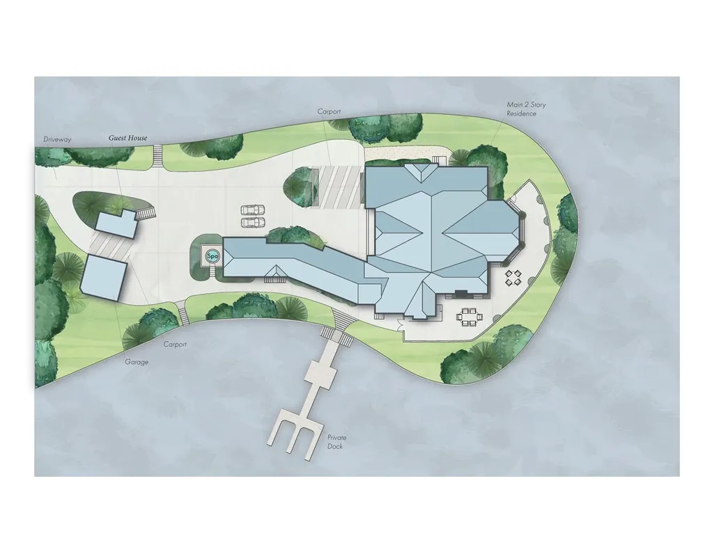 The estate spans two structures with four garages, totaling 7 spaces, ample guest parking, and a grand motor court. The formal entry foyer opens to soaring 2- story ceilings, a double staircase, and walls of glass that frame awe-inspiring lake and ridgeline views from nearly every room.