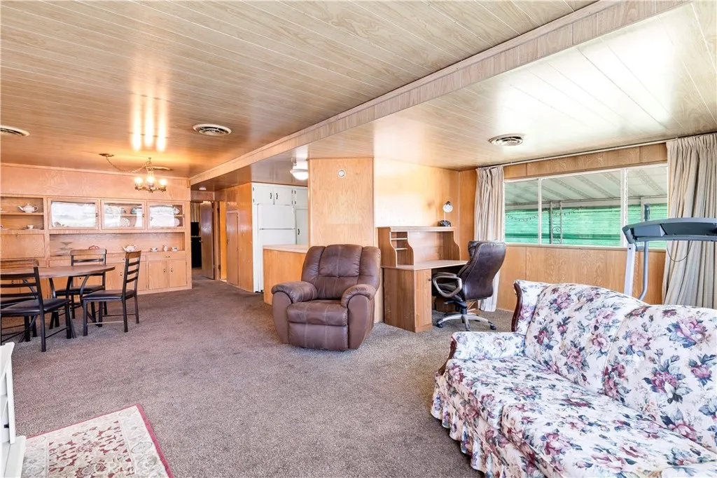 This home features a spacious open floor plan living space! With built in features in the dinning room, large windows in the living room with an amazing view of the mountains and nook in the corner that makes a perfect office/reading/or just an extra space. It has a very well laid out large bedroom with multiple closets and cabinets for all your storage needs. The bathroom is the perfect size for this space with a large mirror on the wall. The kitchen is quaint with everything you would need including more storage cabinets. The beautiful enclosed screened patio make it a perfect spot to see and enjoy the views. It does have a little room built up the patio for storage or can be used as a little office space! It sports a huge yard space with 2 storage units on the premises an one right outside the backdoor that’s set with a washer and dryer in it!