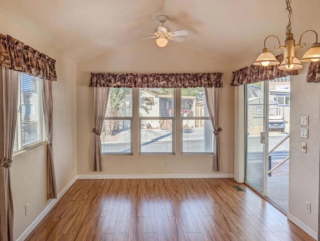 Delightful and well maintained 2-bedroom, 2-bathroom 2006 Laurel crest Park Model ~670 sq. ft. Great features in this bright and cheery home include washer/dryer, new hardwood flooring throughout, new refrigerator, new fireplace in the functional California room with vertical dual opening double pane windows for efficiency, the additional bathroom is new and complete with nice touches. Outside enjoy 2 covered and private decks perfect for entertaining, or having a barbeque, with sweeping views of the local desert hills and mountains, sports courts and driving range. Centrally located in the park you will enjoy the many amenities such as mineral hot spring pool and spas, state of the art fitness center, 9-hole golf course, 8-pickleball courts, tennis courts, laundry facilities, library, and fun organized community events. Come, make this your new home or getaway destination and enjoy this amazing place nestled in the desert at the premiere 55+ Caliente Springs Resort. Lot is not owned; space rent is $707. Easy lender financing (OAC).