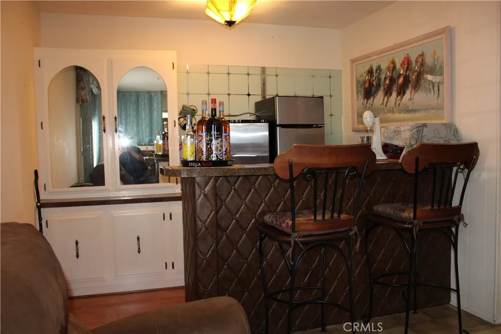 REDUCED TO SELL!!! Triple-wide manufactured home approximately 1,746 sq. ft. (buyer to verify). Recently remodeled master bathroom. Newer double-pane windows in the living room and master bedroom. Features wood shutters in the living and family rooms. Spacious family room includes a bar. The kitchen offers a breakfast bar, ample pantry space, and a large additional closet between the kitchen and laundry area for extra storage. The home includes a large linen closet in the primary bathroom. Flooring includes carpet in the living room and bedrooms, neutral vinyl in the family room, and laminate in the kitchen. Composition roof is approximately 9 years old. Exterior highlights include a front porch, back patio, block steps in front and back, and two storage sheds. Located in the beautiful and highly sought after Twin Oaks Park in La Verne.