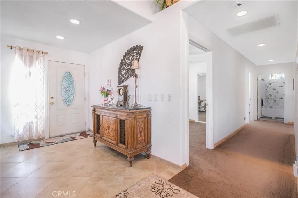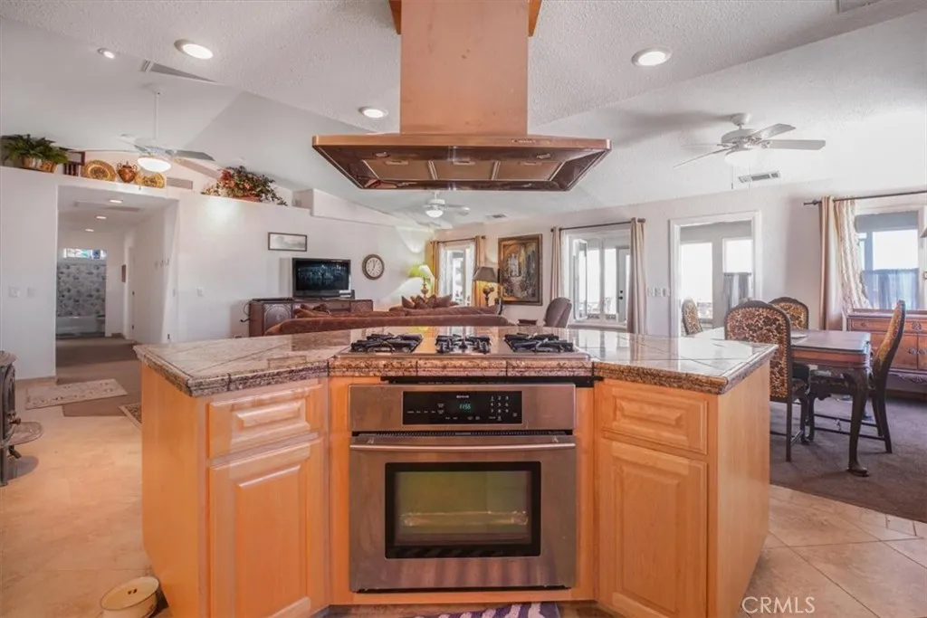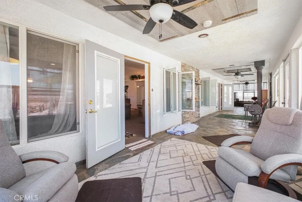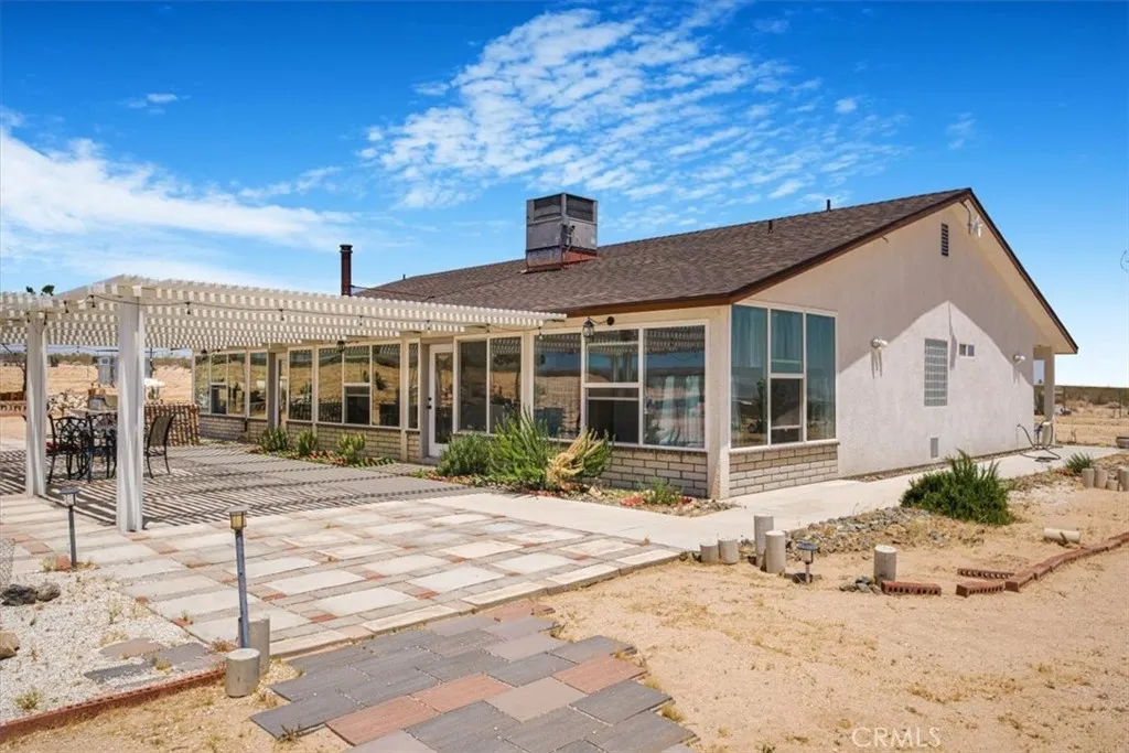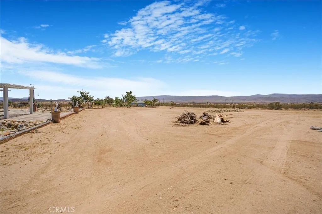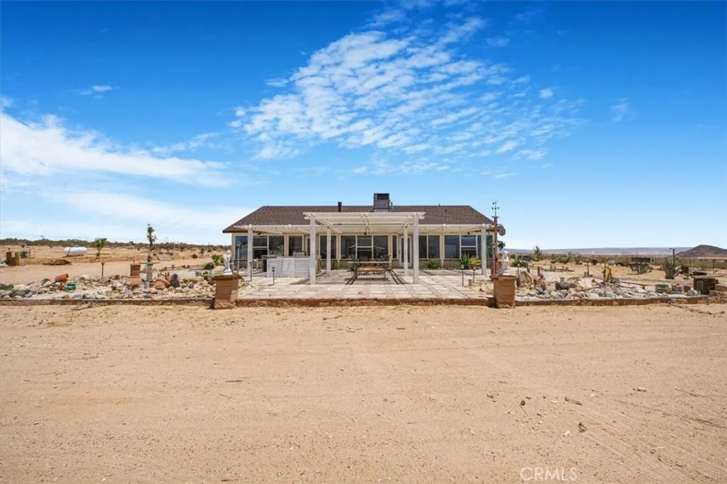Spacious 3-bedroom, 3-bathroom home, built in 2007, offers over 2,300 sq. ft. of thoughtfully designed living space. The open floor plan is ideal for entertaining and features a large walk-in pantry for ample storage. One of the bathrooms is located in the finished garage, providing versatile use options. Enjoy stunning desert views from the sun room, complete with a wood-burning stove and recessed ceiling fans. The highlight of the home is the expansive outdoor living space, featuring a built-in BBQ with sink, all under a large slat-covered patio — the perfect place to soak in the scenery. Ideal area for a future pool. Landscaped with fully irrigated fruit and nut trees: almond, plum, cherry, olive, apricot, apple, and pistachio. Gorgeous Blue Agave lining the perimeter. An additional Bonus shower and restroom. This is a rare opportunity to own a ready-to-enjoy property with room to grow. Come out and experience the peaceful vibe of the desert — this is a place you have to see to truly appreciate.