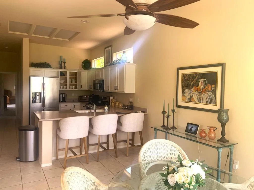 Beautiful front row golf course location with San Gorgonio frontage. 2 large private suites. Plus office/den. Estended Tangier model. Spacious kitchen adjacent to large dining area and great views of golf course. Expansive back patio for entertaining or just quiet relaxing while watching golfers. Walk away from Bourlevard restaurant, , fitness, dance studio library, large pool, pro shop. Includes golf cart. Available July thru September. This property has an East to West backyard setting so it’s cooler in the summer months. Call for an appointment to see. Bonnie 408-210-3278. Tenant occupied at time of listing more pictures will follow. Available July, August & September $2200 per month. $200 cap on gas and electricity.