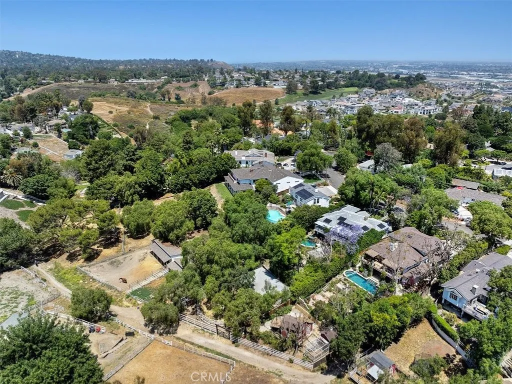 Outside, the property transforms into a private sanctuary. A Moroccan-style veranda opens to a pool bordered by mature trees and lush landscaping. Terraced English gardens guide you to multiple outdoor living areas—ideal for entertaining or enjoying quiet morning coffee. A quaint red barn and matching chicken coop provide direct access to the community’s well-maintained bridle trails.