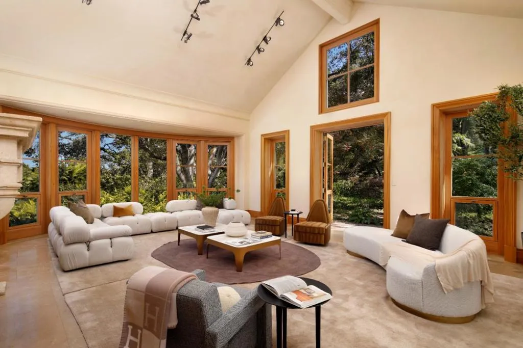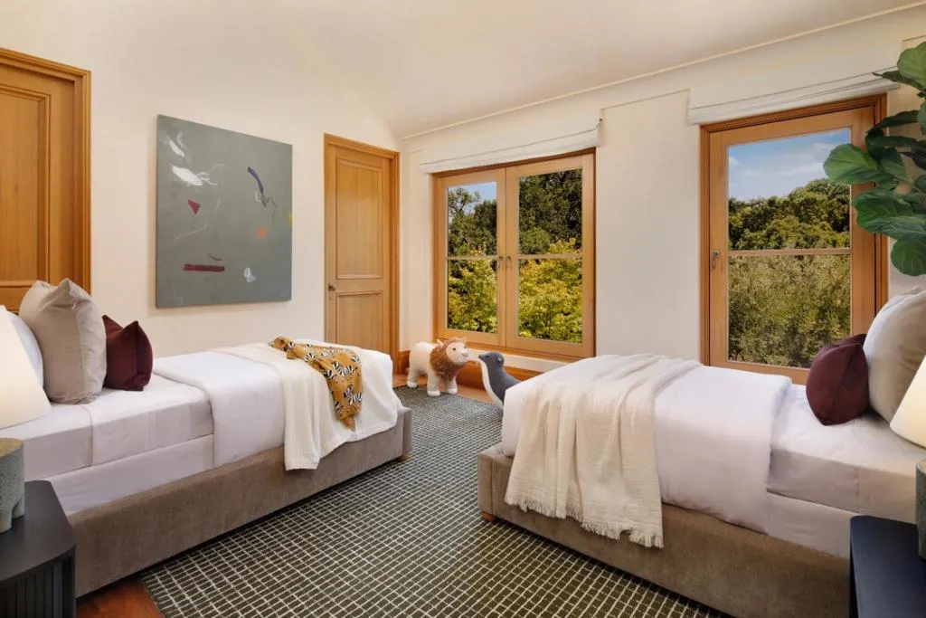 A rare offering on one of Central Woodsides most prestigious streets, just off Mountain Home Road, this extraordinary estate showcases architectural excellence, vineyard beauty, & a luminous natural setting. Spanning almost 4.4 acres with an optional adjacent 3-acre parcel also available, the grounds have been thoughtfully opened to invite abundant sunlight, enhancing both the ambiance and the usability of the land. Designed by Ugo Sap and built by Van Acker Construction, the main residence is defined by dramatic scale, elegant curved forms, and exceptional materials. An elevator connects the two levels, which include six en suite bedrooms including a show stopping primary suite with terrace and spa bath beneath a retractable skylight. A special hemlock wood cabinetry with custom inset lighting. Outdoor living is equally impressive, featuring a thriving Pinot Noir vineyard, olive orchard, and multiple destinations for entertaining. A spacious poolside guest house includes a bedroom, full kitchen, sauna, and bath, while a separate structure with bath and kitchenette is ideal for a fitness center or executive office. Plus a building which has temperature controlled wine storage. A truly world-class property with access to acclaimed Woodside School.