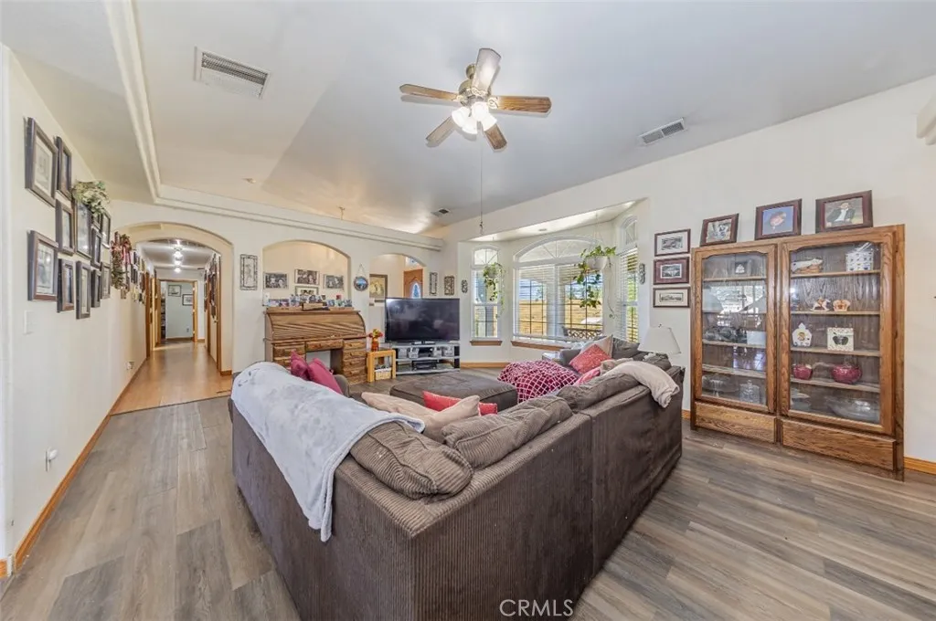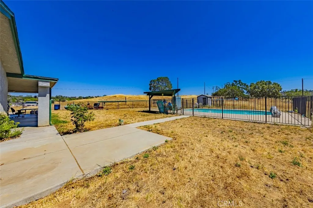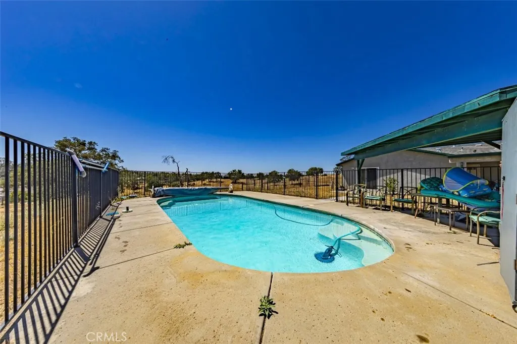 Enjoy you mini Ranch with over 9+ fenced acres for your hours and other farm animals. Great location on a knoll with Sierra Mountain views to take in. Over 2400 sq. ft. of spacious living, including an office or workout room right off of the garage. Having 4 bedrooms and 3 bathrooms, there is plenty of space for the family. Enjoy the benefit of having FREE Lifetime water from the local water system. To keep you cooler, take a dip in the large in-ground Pool and oversized back covered patio. Whole house Sun Run Solar that is leased, keeps you power bills way down, newer Tankless water heater and an oversized walk-in closet in the primary suite. Located just off the main road so as not to hear or see much of any traffic for the home is located off of a cul-de-sac.