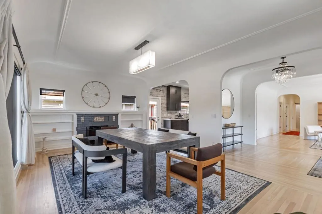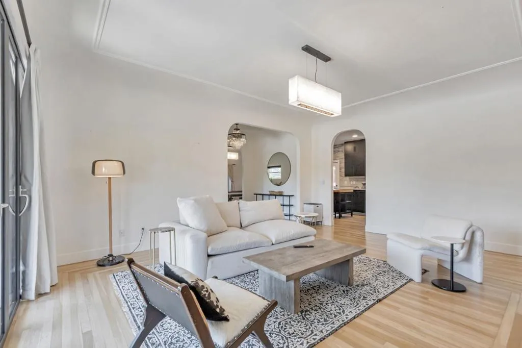This 1920s Spanish Craftsman has been meticulously updated, blending timeless character with modern luxury. With 4 spacious bedrooms, 2 beautiful bathrooms, formal living and dining rooms, and a chefs kitchen, this home offers both style and function. The kitchen features custom cabinets, THOR appliances, GROHE fixtures, and leather honed quartzite countertops. The main level spans 2,047 sqft, with an additional 1,648+/- sqft basement, offering versatile space for guests, a home office, or theater. The home flows seamlessly to outdoor living, with a 13-ft folding door leading to a covered porch. The nearly 10,000 sqft lot includes 2,000 sqft of artificial turf, 1,000 sqft of stamped concrete patio, and drought-tolerant landscapingperfect for entertaining. Inside, the main level boasts 9.5-ft ceilings, while the basement offers 8-ft ceilings for an airy feel. Smart home features include Nest locks, Lutron WiFi switches, and a 4K security system. Energy-efficient dual-pane windows, central AC, and a whole-house fan reduce cooling costs by 50%. Secure parking for four cars is behind an electric gate.