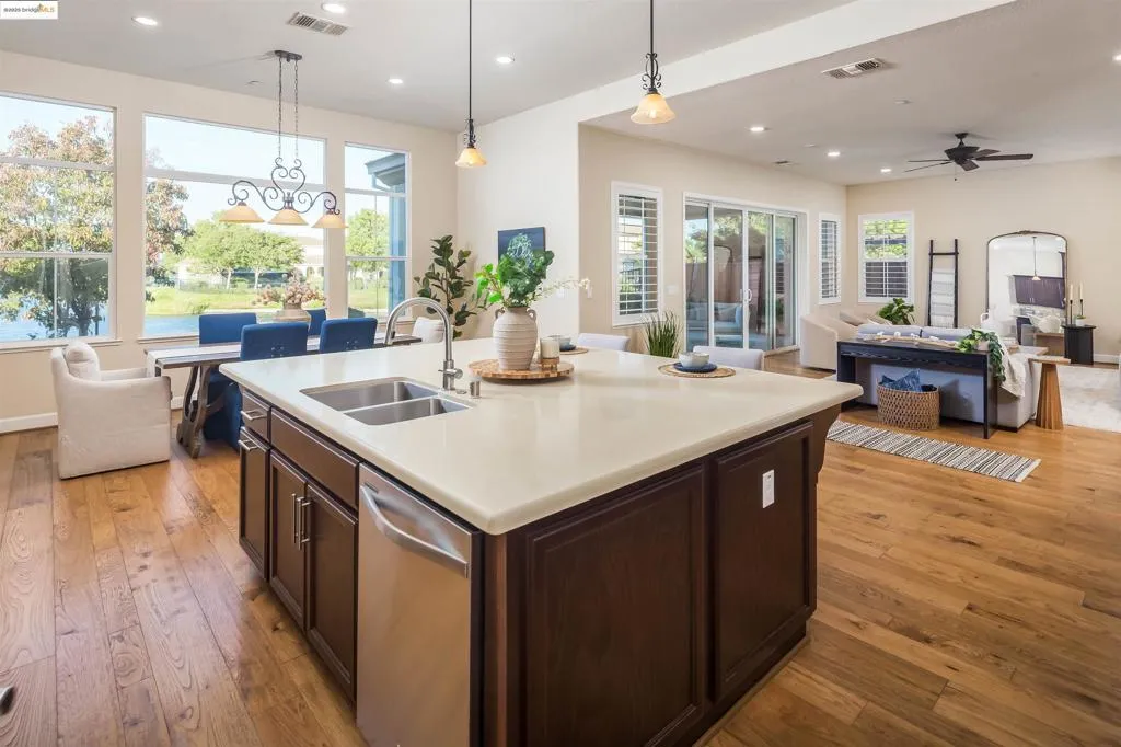 Better than new & beautifully upgraded throughout! This stunning single-story 4 bed / 3.5 bath home offers 3,125 sq ft of exceptional living space on an 11,086 sq ft premium lakefront lot in Oakley’s highly desirable Summer Lake community. Step inside to wide-plank hardwood floors, soaring ceilings, & an open-concept layout filled with natural light. The chef’s kitchen features a quartz island, granite countertops, stainless steel appliances, and rich espresso cabinetry—flowing seamlessly into a spacious great room, perfect for entertaining. Enjoy indoor-outdoor living year-round in the covered California room with peaceful lake views. Just steps from your backyard, enjoy your own private dock—perfect for launching a kayak or paddleboard and soaking in the beauty of the 25-acre lake. The expansive primary suite offers room for a sitting area or workout space, tranquil water views, a generous walk-in closet, and a spa-like bath with soaking tub, separate shower, and dual vanities. Additional highlights include a junior suite plus a flex room with French doors—ideal as an office, den, or optional 5th bedroom. Resort-style community amenities include a 75-ft pool, clubhouse, tennis courts, sports fields, parks, & scenic trails. Lakeside luxury with unbeatable space, and style!