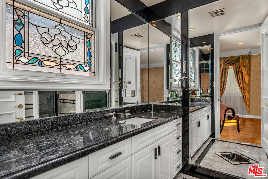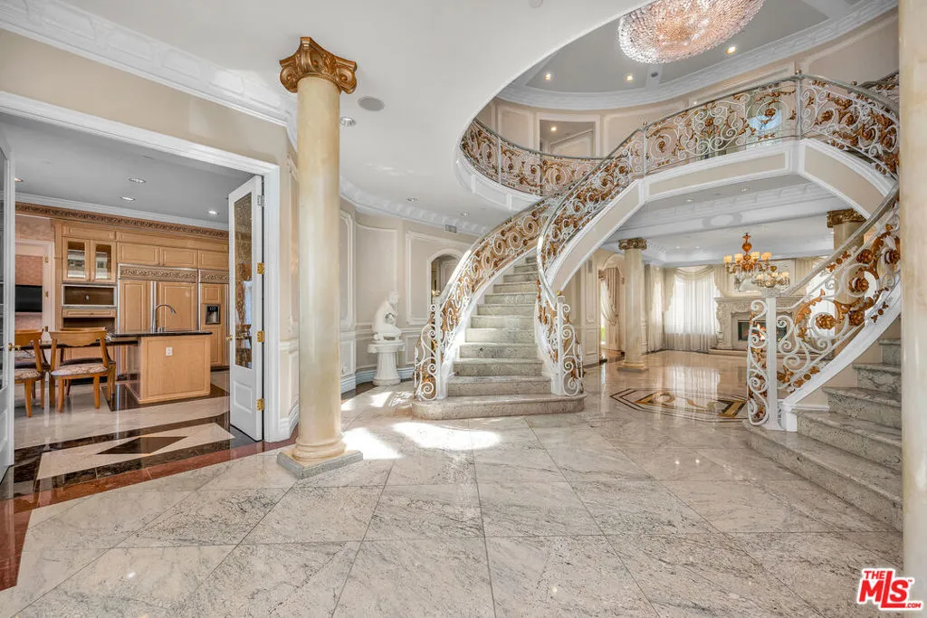 Gated European Elegance with Breathtaking Canyon Views. Perched on a private 2.5-acre estate, this gated European-inspired residence offers unparalleled luxury and privacy, complete with sweeping canyon vistas and museum-quality finishes throughout. Custom wrought-iron doors open to a dramatic entryway featuring a grand double marble staircase that sets the tone for the elegance within. This expansive estate features all the refined spaces expected of a premier property: a Formal Dining Room, stately Library, elegant Living Room, Chef’s Kitchen, Games Room, Home Theatre, and Wine Cellar. A separate Guesthouse provides additional comfort with two bedrooms ideal for hosting extended family or guests in style. Car enthusiasts will appreciate the three-car garage and generous driveway with ample room for additional vehicles. Outdoor living is equally impressive with a spectacular Infinity Pool, private Tennis Court, Sauna, and a fully equipped Outdoor Kitchen and Pool House perfect for entertaining on warm summer evenings. This is more than a home, it’s a lifestyle of luxury, privacy, and timeless sophistication.