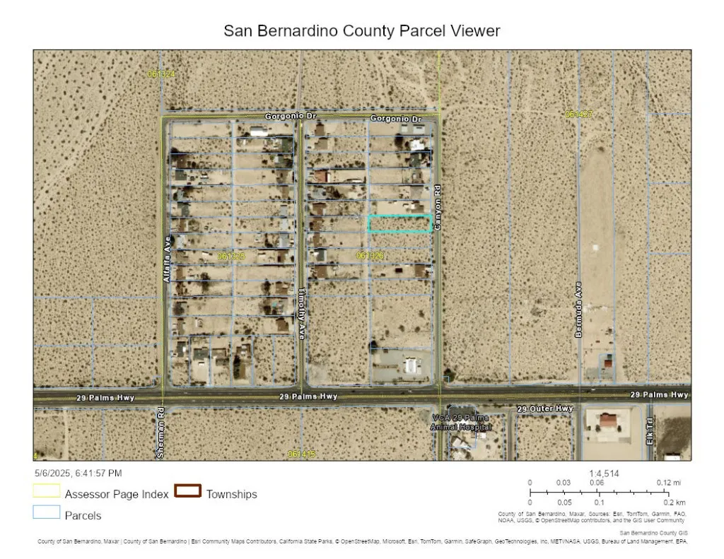 Embrace the great potential of this shovel ready 0.5ac lot in a very desirable neighborhood. This lot is directly fronting paved road and a stone’s throw way from 29 Palms Highway. Power lines are in the back of the lot with gas and water lines in the street. The neighborhood is mostly developed and strategically located about 4 miles to downtown 29 Palms and 9 miles to Joshua Tree National Park. The lot is zoned for RS-4 according to City of 29 Palms. It offers an unique opportunity to enjoy a peaceful desert lifestyle with expansive open spaces and breathtaking natural beauty. Do not miss this opportunity to make your dream come true on this blank canvas. Please note that the boundaries represented in the photos are only an estimation. Buyers should verify boundaries, zoning and utilities, ensuring every aspect aligns with their vision for the property.