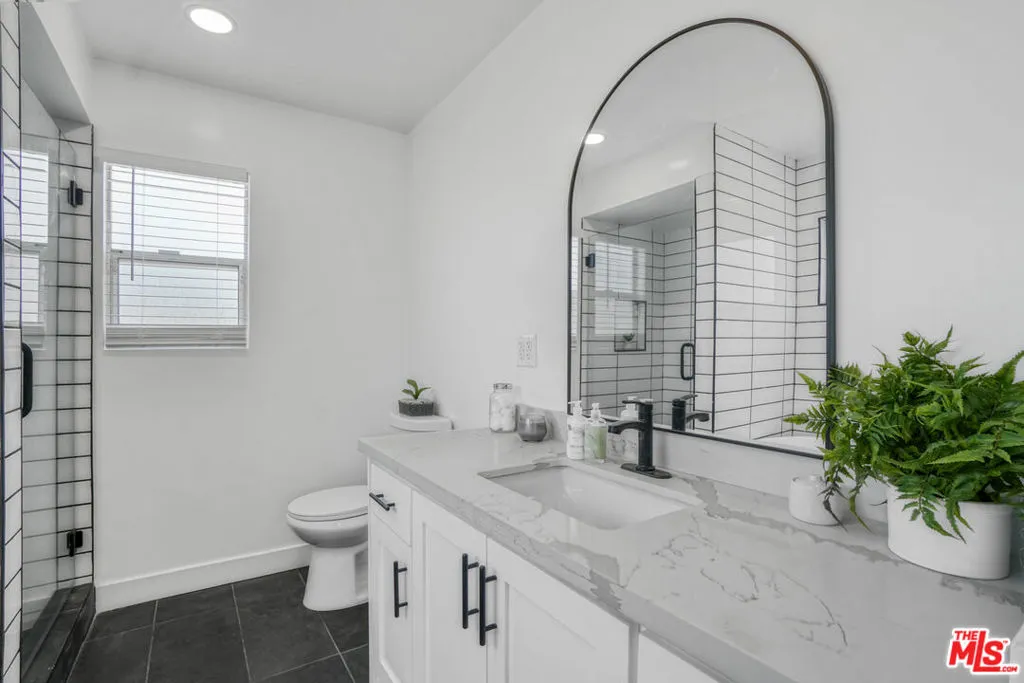 Step into this beautifully reimagined residence, where every detail has been meticulously renovated to deliver the perfect blend of modern luxury and timeless charm. This fully remodeled home features an open-concept floor plan bathed in natural light, luxury wide-plank flooring, recessed lighting, and sophisticated designer finishes throughout. The gourmet kitchen is a true showstopper, boasting crisp white shaker cabinetry, gleaming quartz countertops, and premium stainless steel appliancesoffering both form and function for the culinary enthusiast. The adjacent living and dining areas connect seamlessly, creating a warm and inviting space ideal for everyday living and entertaining.Retreat upstairs to find tranquil bedroom, serene with generous closet space, including a spacious primary suite that features a custom walk-in closet and a spa-inspired ensuite bathroom complete with dual vanities, contemporary fixtures, and a sleek glass-enclosed shower.The home offers multiple fully updated bathrooms showcasing high-end tilework, matte black finishes, and clean, modern aesthetics. One of the bedrooms offers flexibility to serve as a home office, guest room, or creative spacetailored to your lifestyle needs.Step outside to enjoy the private, freshly landscaped backyardperfect for al fresco dining, morning coffee, or weekend lounging. A detached garage and oversized driveway offer abundant off-street parking and potential for an ADU (buyer to verify).Located on a quiet residential street, this move-in ready home is just minutes from major freeways, providing easy access to Downtown LA, the Westside, and beyond. With no expense spared in the renovation, this is a rare opportunity to own a truly turnkey property that combines elevated design, comfort, and unbeatable convenience.