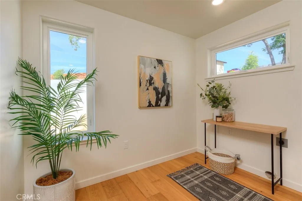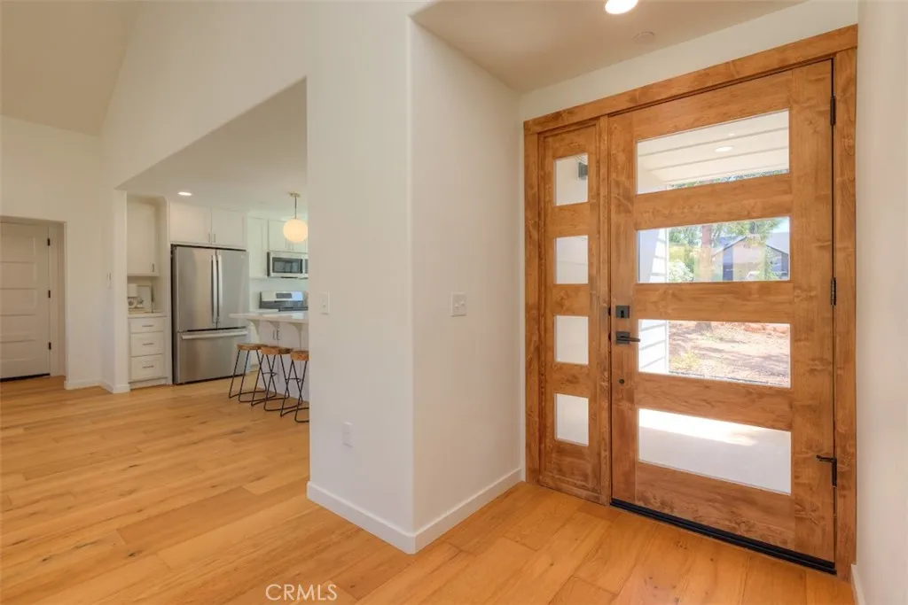 Step inside to discover soaring vaulted ceilings that enhance the bright, open-concept layout. Beautiful Shaw pre-engineered wood flooring seamlessly connects the main living spaces, creating a perfect blend of style and functionality. Every major room is individually climatized by state-of-the-art ductless Daikin mini-splits, giving you custom temperature control and top-tier energy efficiency year-round.