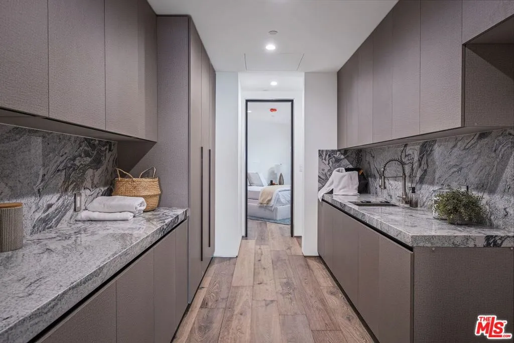 Tucked away on a coveted cul-de-sac in prime Bel Air, 2304 Donella Cir is a striking architectural gem that captures the essence of modern luxury. Perched above the city with sweeping views of the hills and lake, this four-level estate is a masterclass in design and sophistication.At the heart of the home, a custom Italian kitchen makes a bold statement with sleek black counters, a dramatic waterfall island, and a showstopping glass-enclosed wine display. The primary suite feels like a five-star retreatcomplete with a double-sided fireplace, a spa-worthy bath wrapped in exotic Spanish tile, steam shower, sculptural soaking tub, and dual stone vanities.An elevator connects all four levels, featuring a grand entertainment lounge, a walk-in wine cellar for 1,000+ bottles, a private gym, and more. Additional highlights include a gated driveway, 5-car garage, Sonos sound system, designer LED lighting, crystal chandeliers, and wide-plank white oak floors. Floor-to-ceiling glass walls dissolve into expansive terraces, creating seamless indoor-outdoor flow. The infinity-edge pool hovers effortlessly above the lush landscape, blending luxury with tranquility. A bold statement in one of Los Angeles’ most prestigious enclavesthis is Bel Air living redefined.