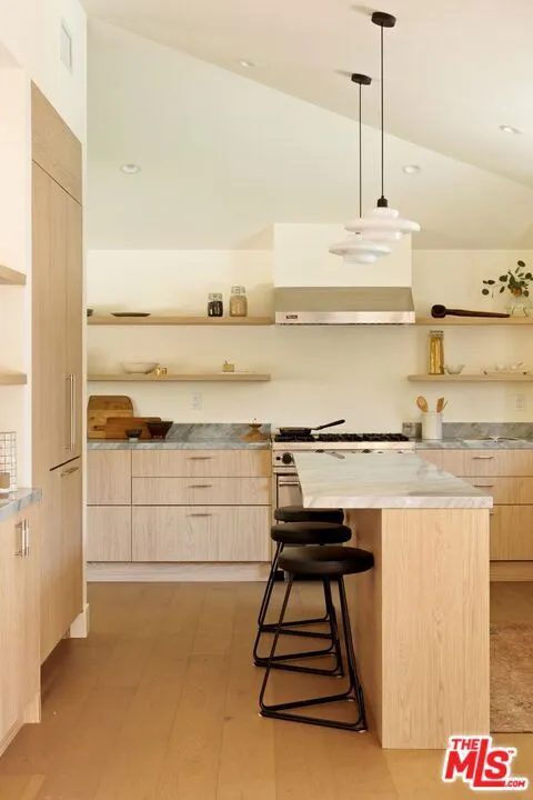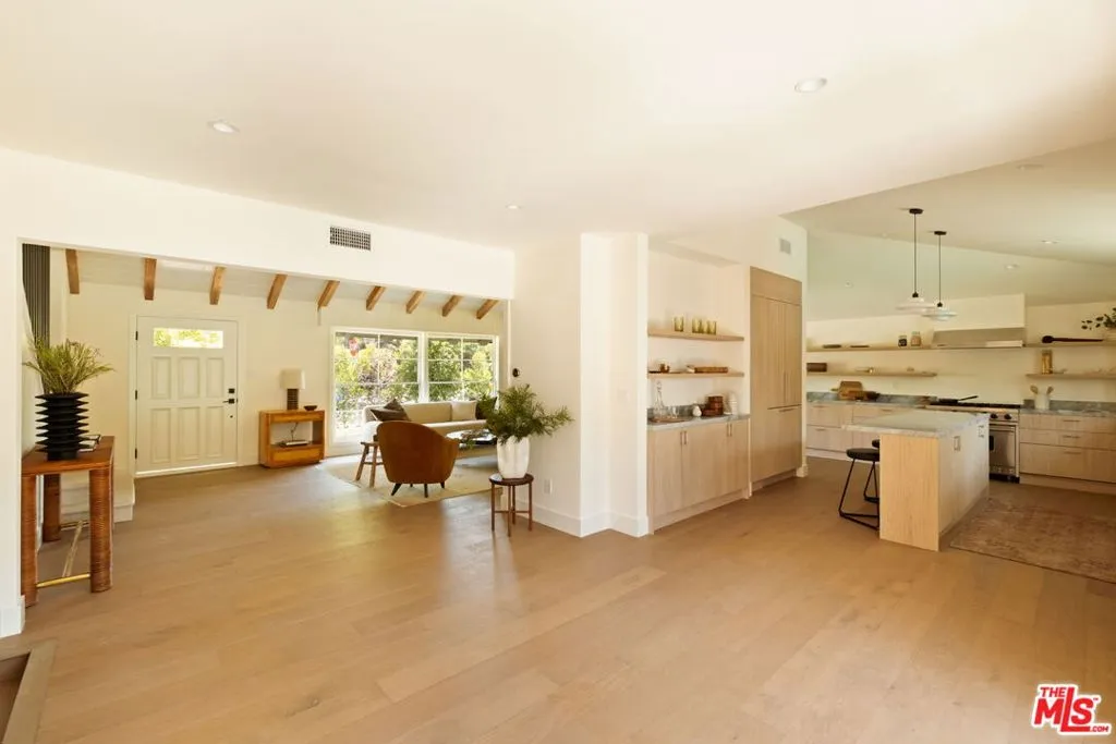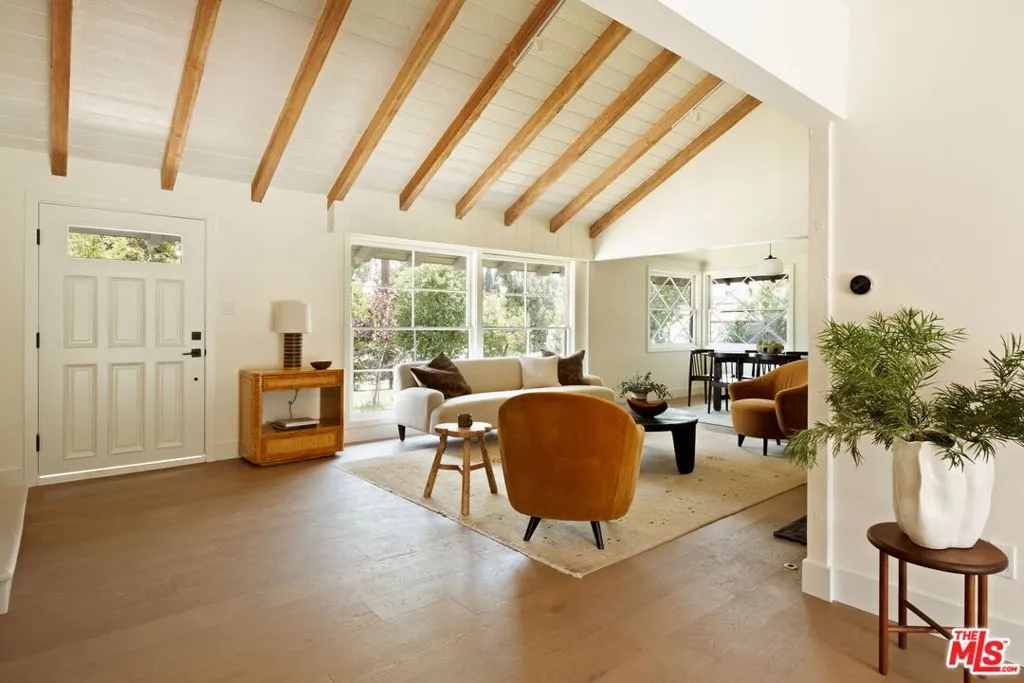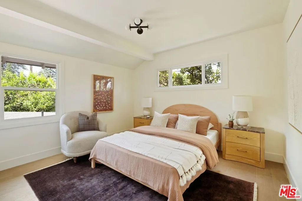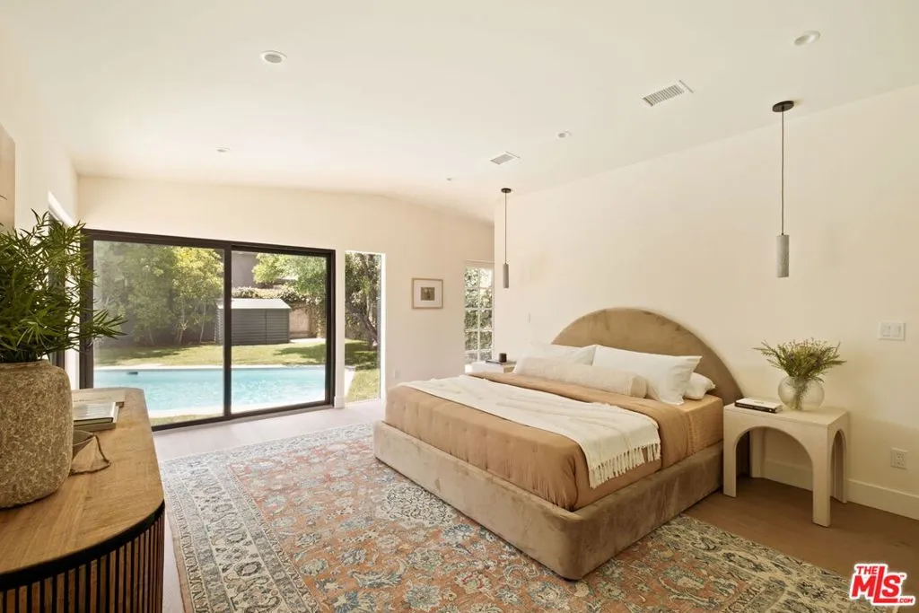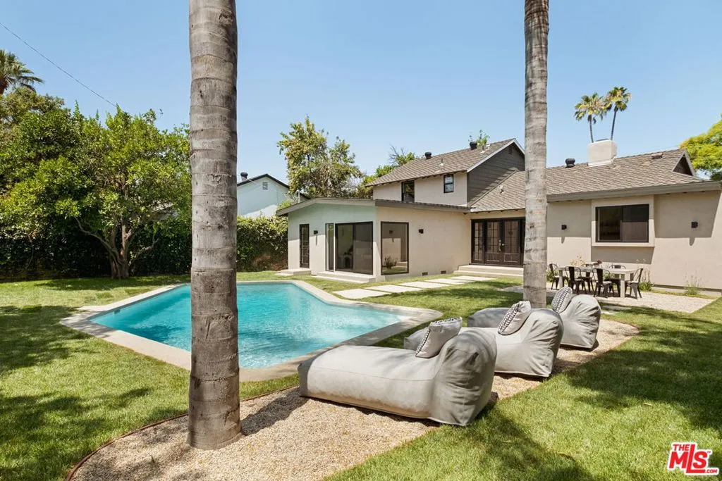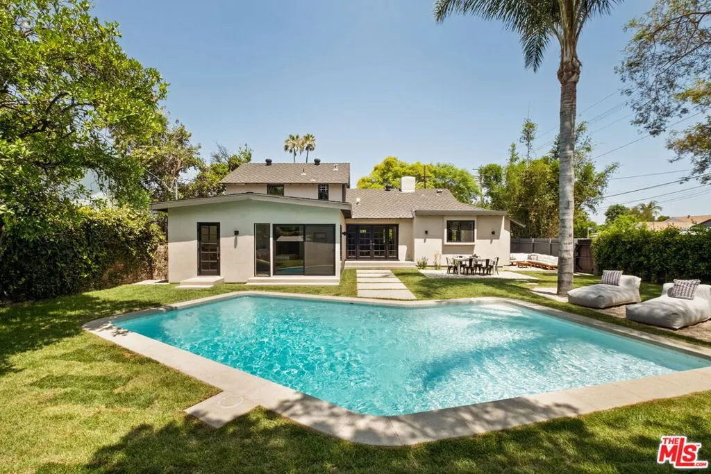 Welcome to this exquisite, renovated mid-century home, nestled in the heart of the valley. From the moment you arrive, you’ll be captivated by the home’s timeless elegance and stylish design. Featuring four generous bedrooms and three meticulously upgraded bathrooms, this property sits on an expansive lot complete with a large pool and a spacious backyard with two large palm trees at the end of the pool. Inside the living room you are welcomed by abundant natural light, high exposed beam ceilings, and a striking fireplace that creates a warm and welcoming atmosphere. The adjacent dining area features diamond lattice windows that add a touch of charm and character. At the heart of the home lies a spacious chef’s kitchen designed for both function and style. It boasts elegant marble countertops, custom cabinetry, a convenient breakfast bar, a premium Viking stove, and a beautifully integrated Dacor built-in refrigerator and freezer. French doors lead directly from the kitchen to the stunning backyard and pool. Down the hall, you’ll find a guest bedroom and a luxurious primary suite. The primary offers a generous bedroom area, a massive walk-in closet, and a spa-like ensuite bathroom complete with double sinks, a large walk-in shower, and sleek porcelain countertops atop custom cabinetry. Upstairs you’ll find two more bedrooms and a large bathroom thoughtfully laid out so the kids have a quiet place to relax while the adults continue outside near the pool on long summer nights. The expansive backyard boasts a spacious pool, ample room for entertaining, mature trees and ficus hedges for added privacy, and two towering palm trees that capture the quintessential California style. This property provides easy access to Sherman Oaks, Burbank, Encino, Studio City and more. It’s just 10 minutes from the Sherman Oaks Whole Foods and Ventura Blvd. It is a special, quiet retreat that captures the very best of life in the San Fernando Valley.