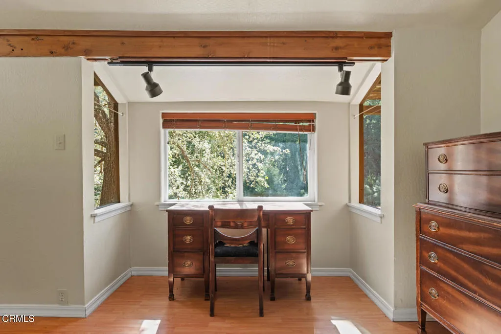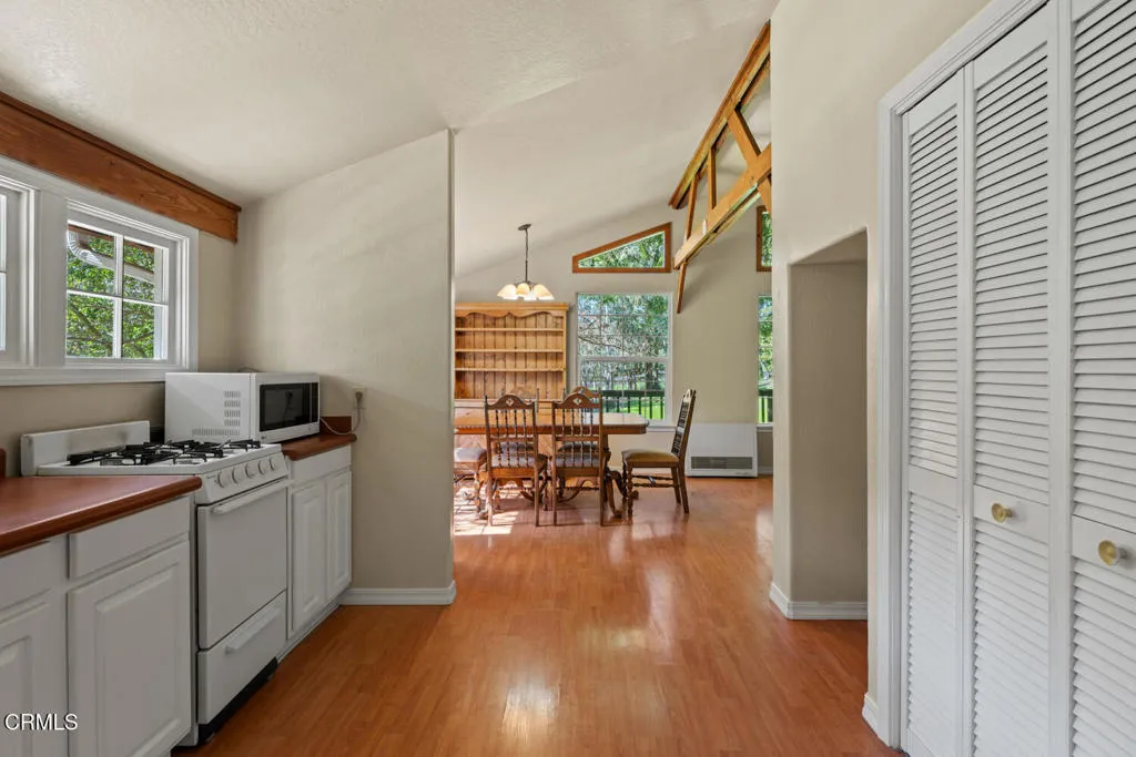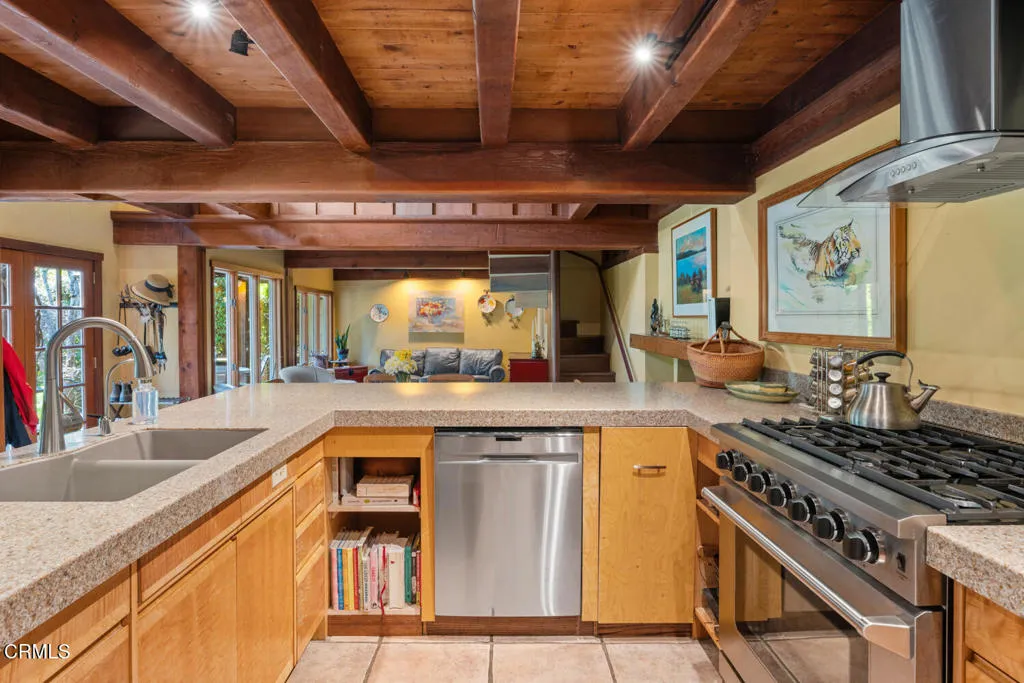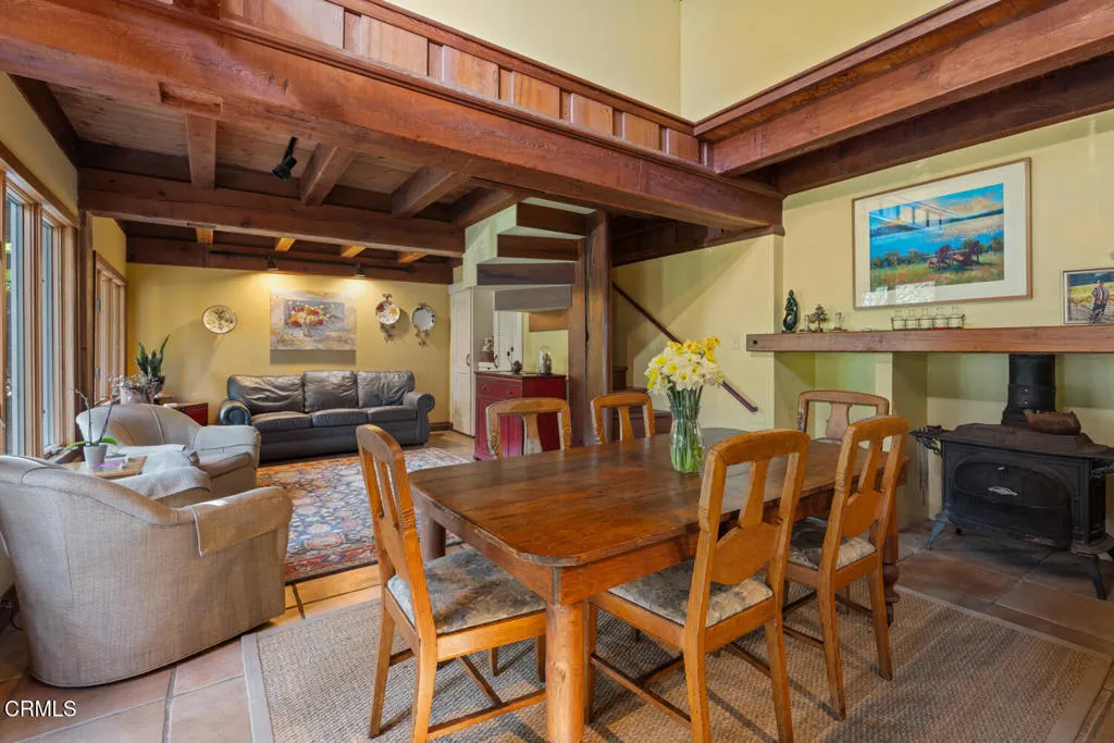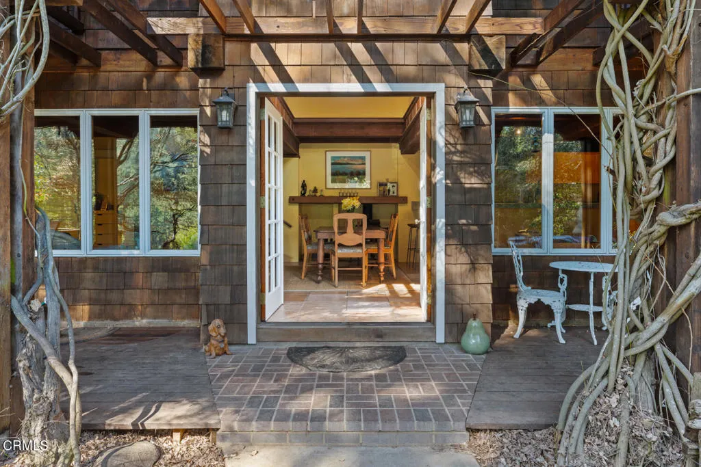 Winding along the gated, private drive as you enter into Mill Creek Meadows, this 40-acre estate, complete with a main house and studio, separate guest house and workshop, rolling meadows, tree-lined pathways, and year-round creek with waterfall, exudes rustic elegance. The main residence features beautiful hand-hewn timber beams inside and out and is sited at a generous elevation, offering incredible views from virtually every vantage point. An inviting wisteria-draped front porch entrance opens into the first-floor great room. The central core of this room boasts a two-story vaulted ceiling above the dining area and is flanked on one side by the living room and on the other, a kitchen, both with ceilings at a lower profile. The farmhouse-style kitchen is striking with its wraparound counter and breakfast bar, exposed beams and rafters, coffered ceiling and abundant cabinetry. The second floor hosts the primary bedroom suite, bath/laundry and family room, and includes a screened-in porch and steps that lead to a beautiful rose and vegetable garden. The detached studio visually blends into the landscape and features a spacious second bedroom and bath. The grounds are truly spectacular. There are stretches of meadows, terraced gardens, apple orchards, and stands of majestic Redwoods. Additional features include perimeter fencing, a paved driveway, a 3-car garage, green house, and 3 wells.