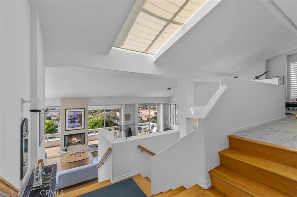 The spacious living and dining areas flow seamlessly to an ocean-facing terrace, perfect for sunset entertaining. A chef’s kitchen with premium appliances, stone countertops, and custom cabinetry connects effortlessly to the main living space. Downstairs, the primary suite is a tranquil retreat with a romantic fireplace, private balcony, spa-like bath, and sweeping views that stretch from the coastline to the city skyline.