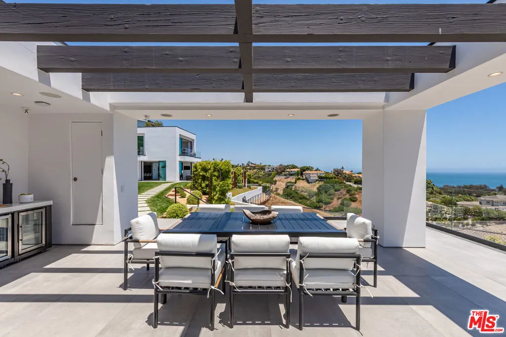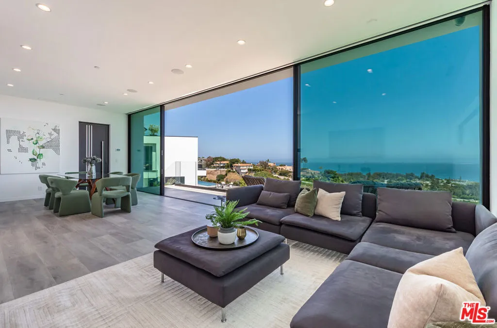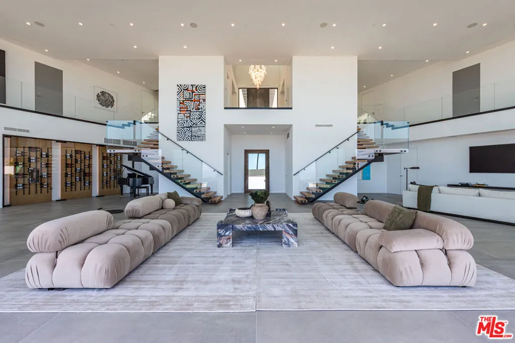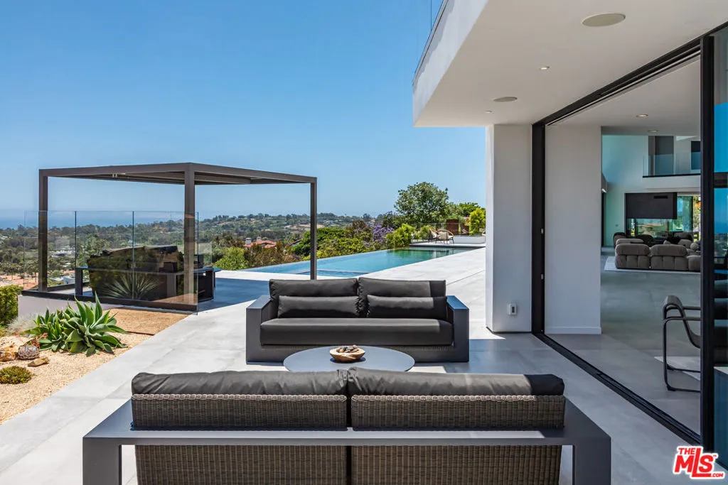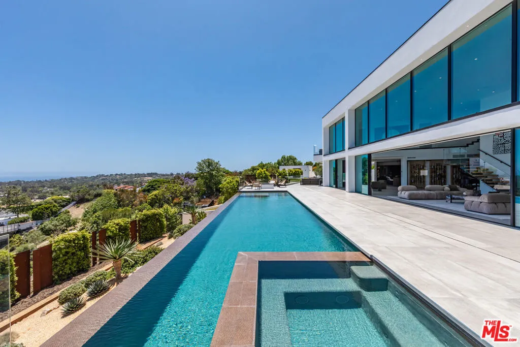Perched on two pristine acres in Malibu, this brand-new, gated contemporary estate, spans 7,200 square feet and showcases dramatic ocean views through floor-to-ceiling glass walls. The main house features airy living spaces, including a great room with 21′ ceilings that opens to a 54′ long infinity pool blending into the Pacific Ocean, a seamless flow into a Leicht European kitchen and dining area, a wine cellar, study, and state-of-the-art theater. The entire top-floor primary suite offers a wraparound deck, luxurious bathroom with freestanding tub, and expansive walk-in closet, complemented by four additional ensuite ocean-view bedrooms. Manicured grounds with fire pits, fountains, and a grassy lawn lead to a BBQ pavilion with a full outdoor kitchen, fireplace, and TV, while a detached 815-square-foot guest house mirrors the estate’s stunning views. Complete with an elevator, Control4 automation, camera security, a 4-car garage, and a gated motor court, this architectural masterpiece redefines coastal luxury.